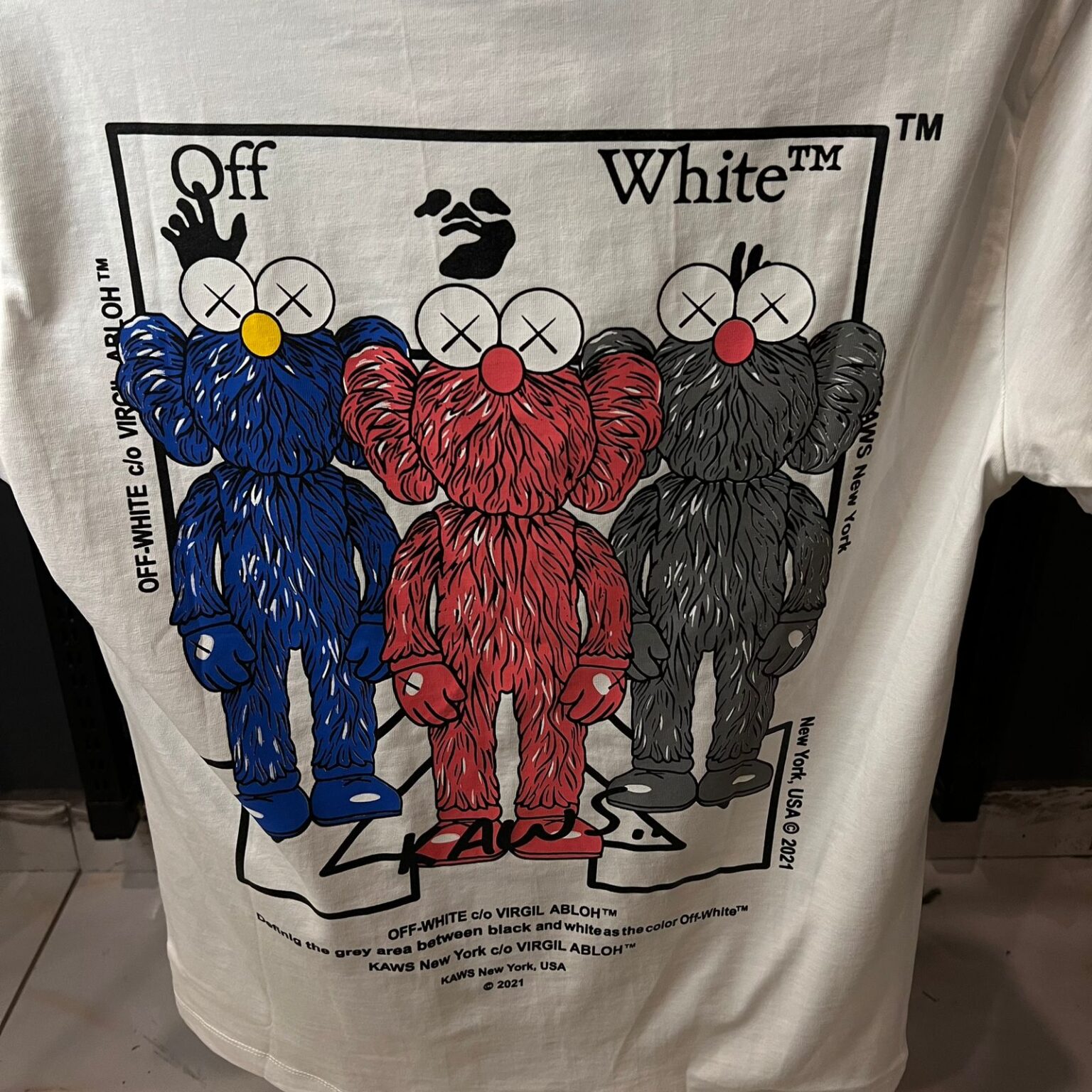 5f2cb6e6-5000-4be4-ad81-d9ebdced0034 Published February 21, 2024 at 1600 × 1600 in OFFW TSHIRT WHITE MULTI KAWS PRINT ← Previous