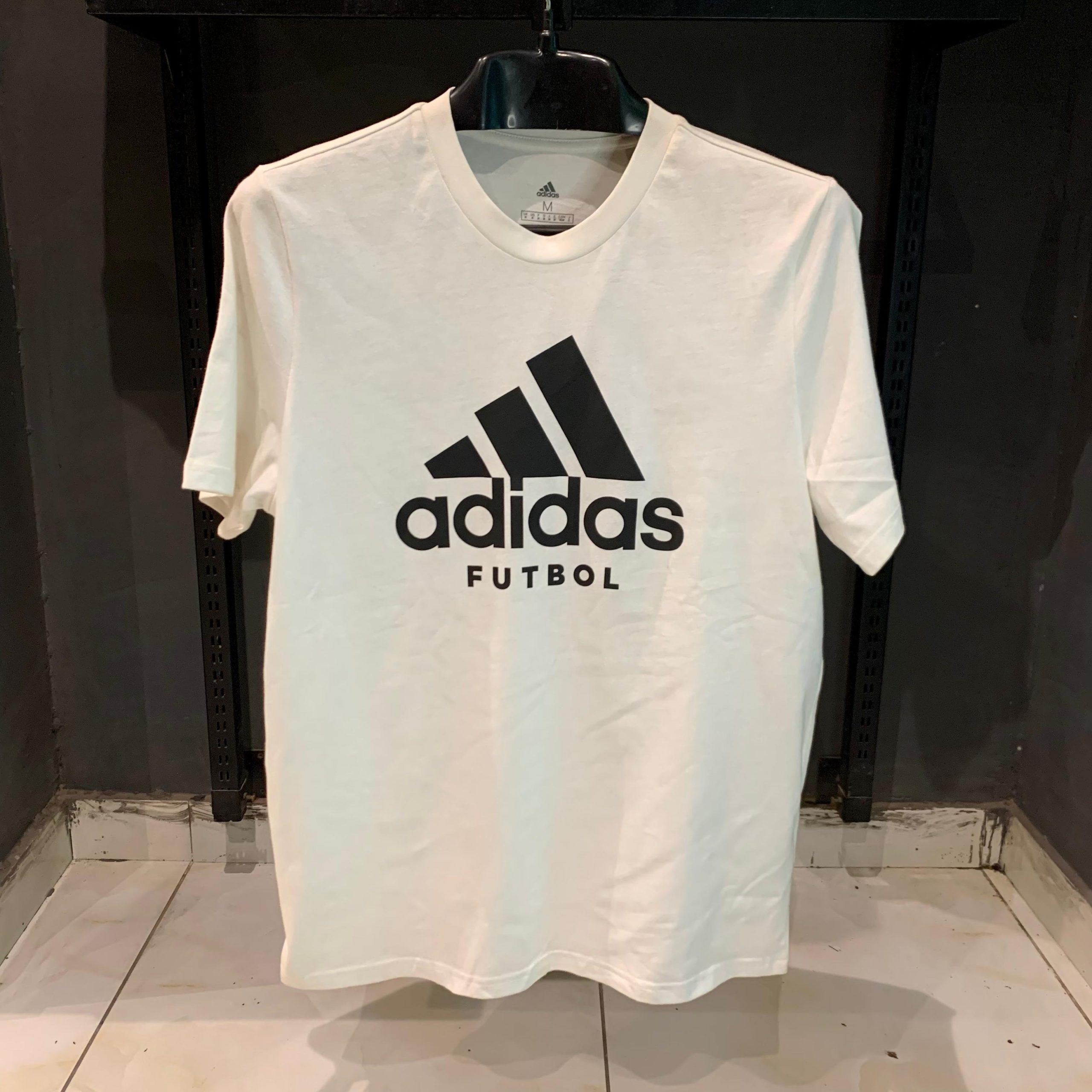 This off-white Adidas t-shirt highlights a striking football logo for a clean, athletic look. Ideal for casual wear or showing your passion for the sport in style.