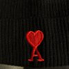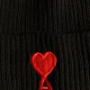 The AMI Paris Heart Logo Ribbed Knit Beanie in black is a refined yet playful winter essential that captures the brand’s signature Parisian charm. Crafted from a luxurious wool blend, this ribbed-knit beanie features the iconic Ami de Cœur red heart and “A” logo embroidered on the front — a symbol of love and authenticity from the house of Alexandre Mattiussi. Designed with a classic fold-over cuff for a secure and cozy fit, this piece blends modern streetwear appeal with timeless sophistication. Perfect for both everyday wear and elevated cold-weather looks, it embodies effortless French style with a touch of warmth and character.