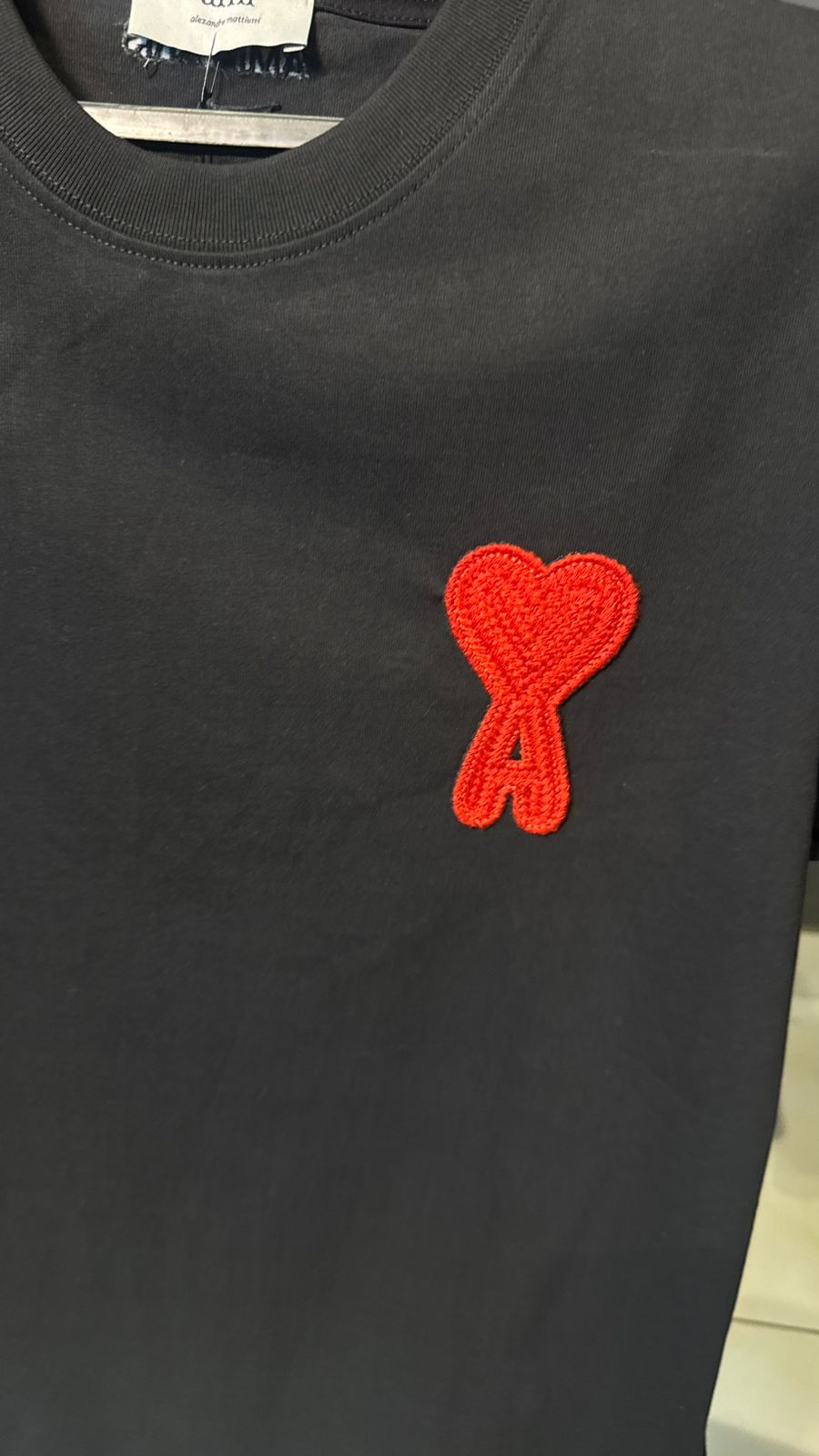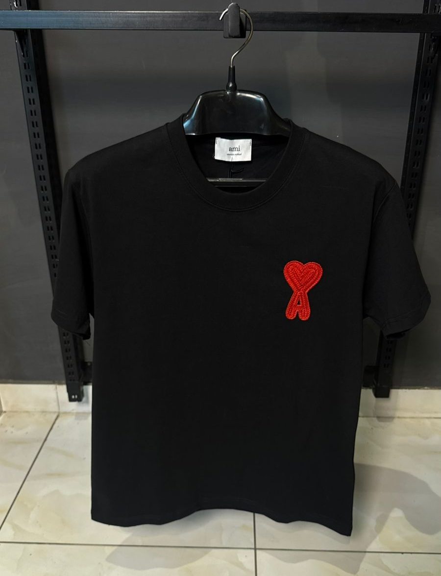 Embrace the charm of Parisian style with a modern streetwear classic. This AMI Paris T-Shirt features the iconic Ami de Cœur (Friend of Hearts) logo, meticulously embroidered on the chest in a vibrant red thread. The signature heart-and-A motif is a symbol of friendship and effortless sophistication, making this piece a staple for any high-end wardrobe.