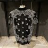 Infused with bold streetwear influence and luxury craftsmanship, the Amiri Bandana Pattern Knitted Polo Shirt is a standout piece in any wardrobe. Featuring an intricate black and white jacquard bandana motif, this polo is crafted from premium knit fabric for both structure and softness. Finished with ribbed trims and a refined collar, it delivers a modern silhouette that balances comfort and edge.