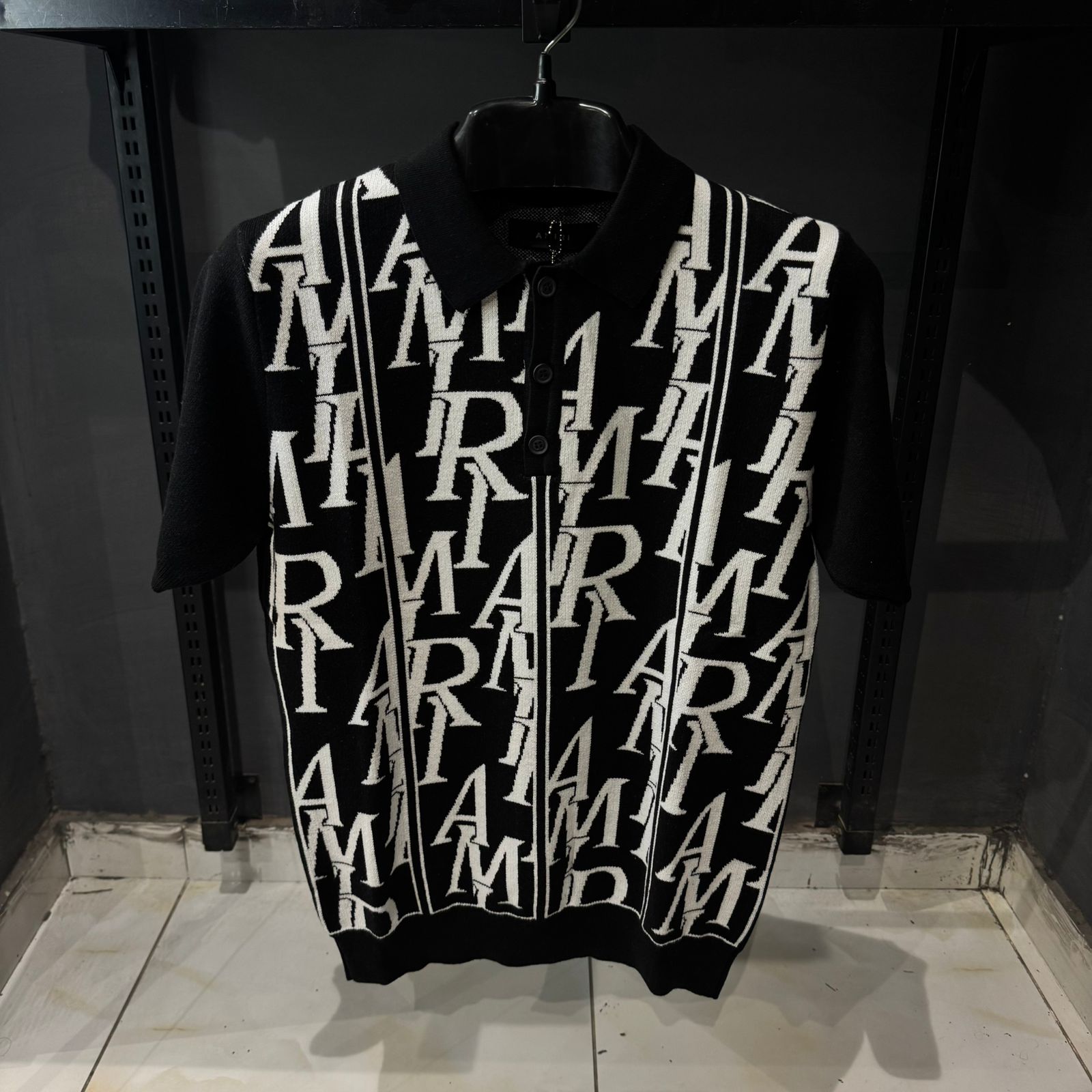 Refined luxury meets streetwear edge in the Amiri Knitted Polo Shirt. Crafted from premium jacquard-knit fabric, this piece features a bold black and white pattern with a soft yet structured feel. The classic polo collar and ribbed trims add a tailored finish, making it perfect for both casual and upscale looks. A versatile statement piece with signature Amiri attitude.