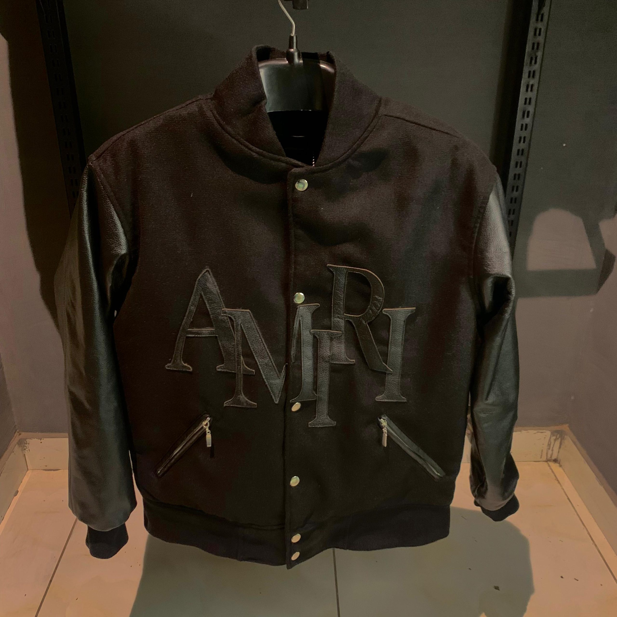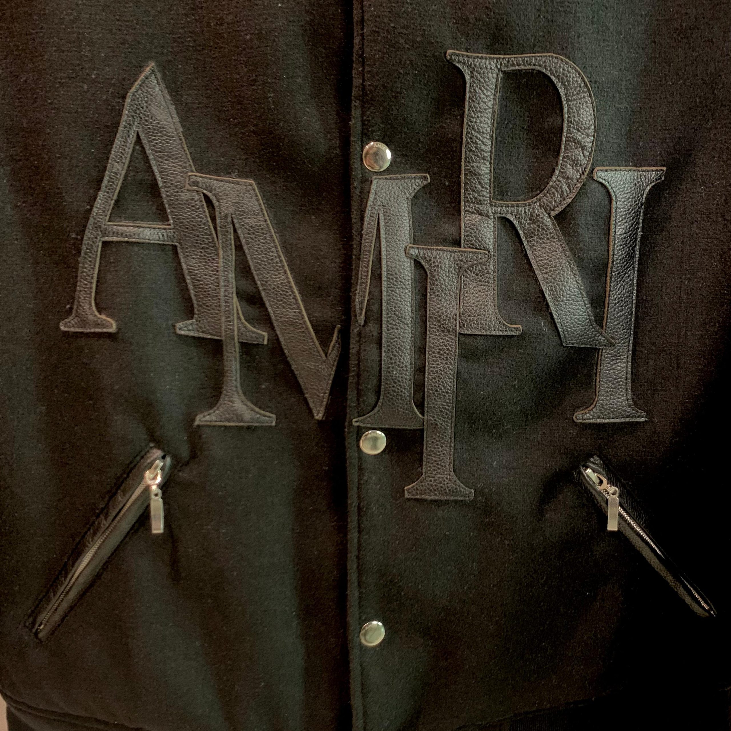 With its sleek leather detailing and signature logo, the AMIRI Leather Logo Varsity Jacket blends luxury and sport for a standout, high-fashion look.