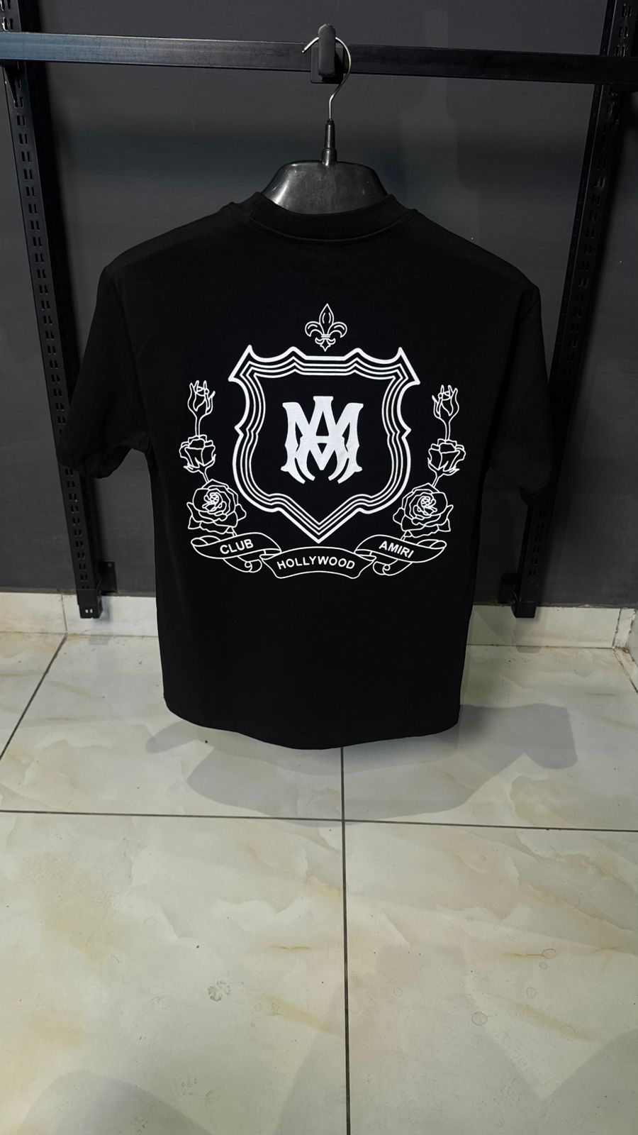 Channel the elite Los Angeles lifestyle with the AMIRI Club Hollywood Tee. This high-impact piece features a large-scale, detailed back-print showcasing the “AMIRI Club Hollywood” floral crest and shield. The monochromatic white-on-black design offers a sharp, clean aesthetic that perfectly captures the brand’s rock-and-roll heritage.