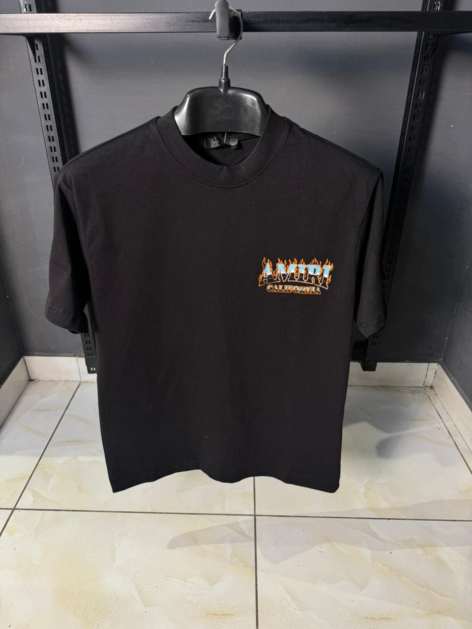 True to AMIRI’s reputation for premium quality, this tee is crafted from ultra-soft, heavyweight cotton jersey that offers a relaxed, slightly oversized fit. The intricate, multi-color screen print uses high-density inks to ensure the flames and palm tree details remain vivid. This is a must-have statement piece for any serious streetwear collector.