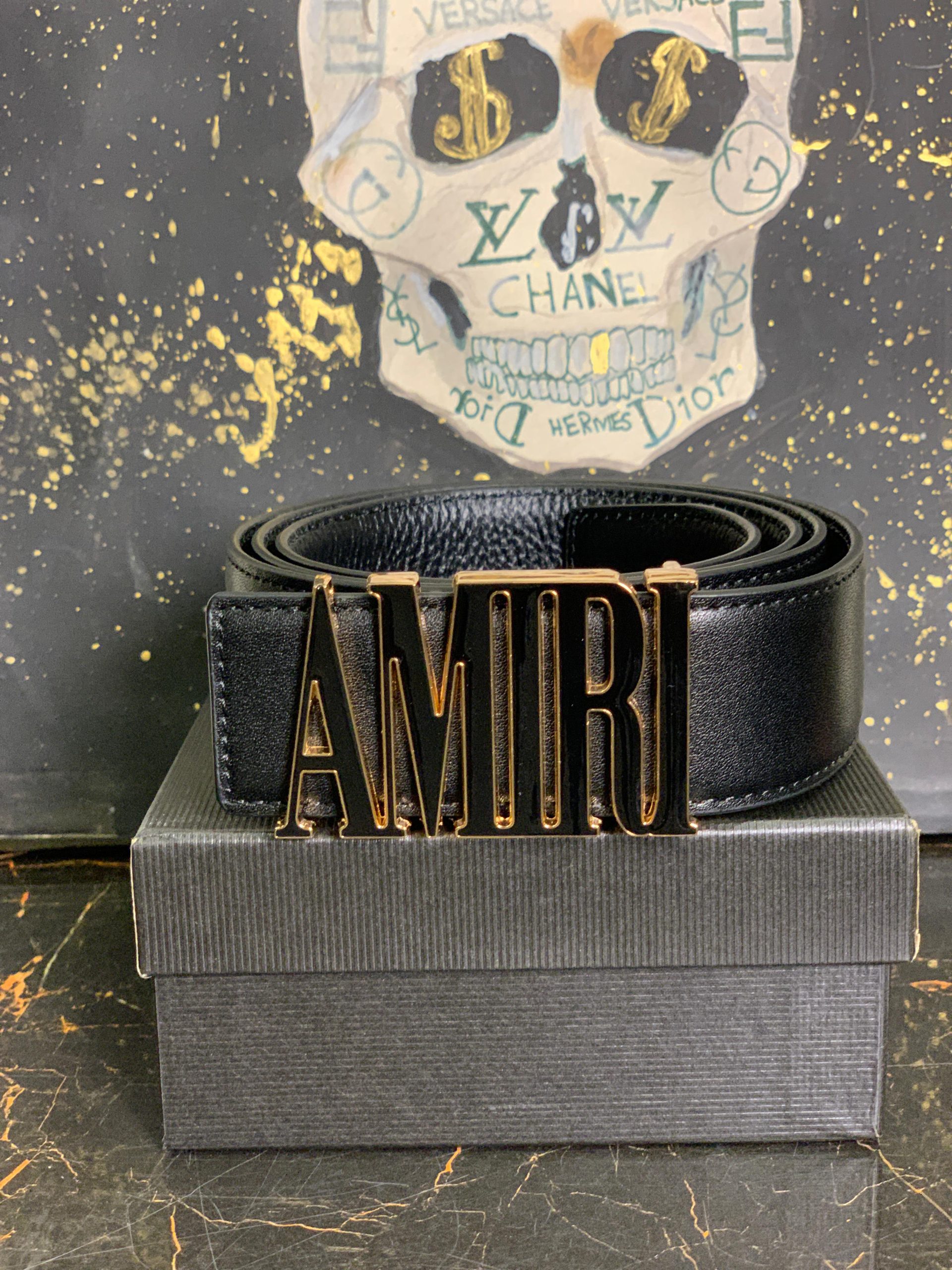 Crafted from premium leather, the AMIRI Core Belt features a bold gold-tone signature logo buckle that adds a luxurious edge to any outfit. Sleek, minimal, and designed for everyday statement style — a perfect blend of modern streetwear and high-end fashion.