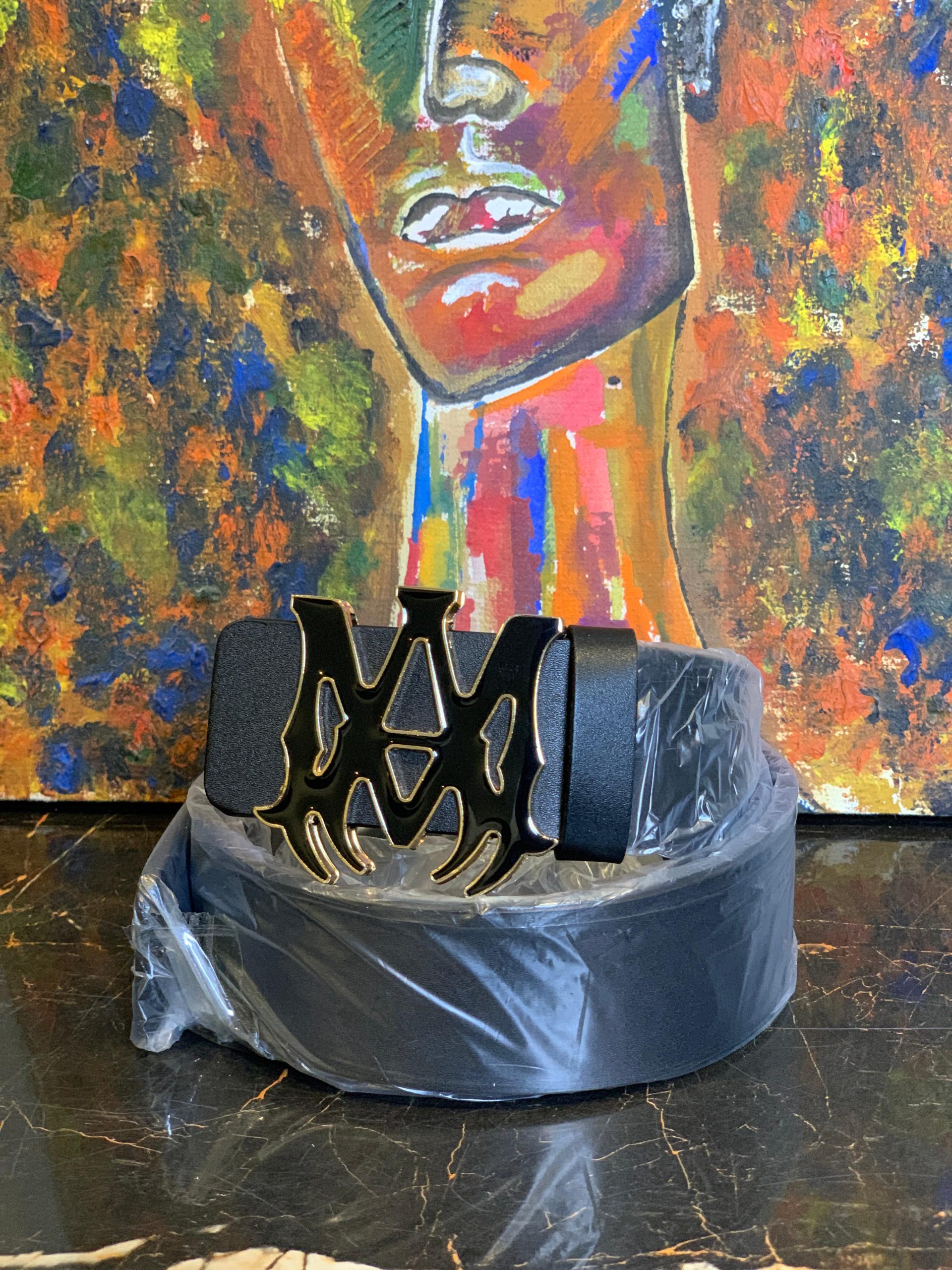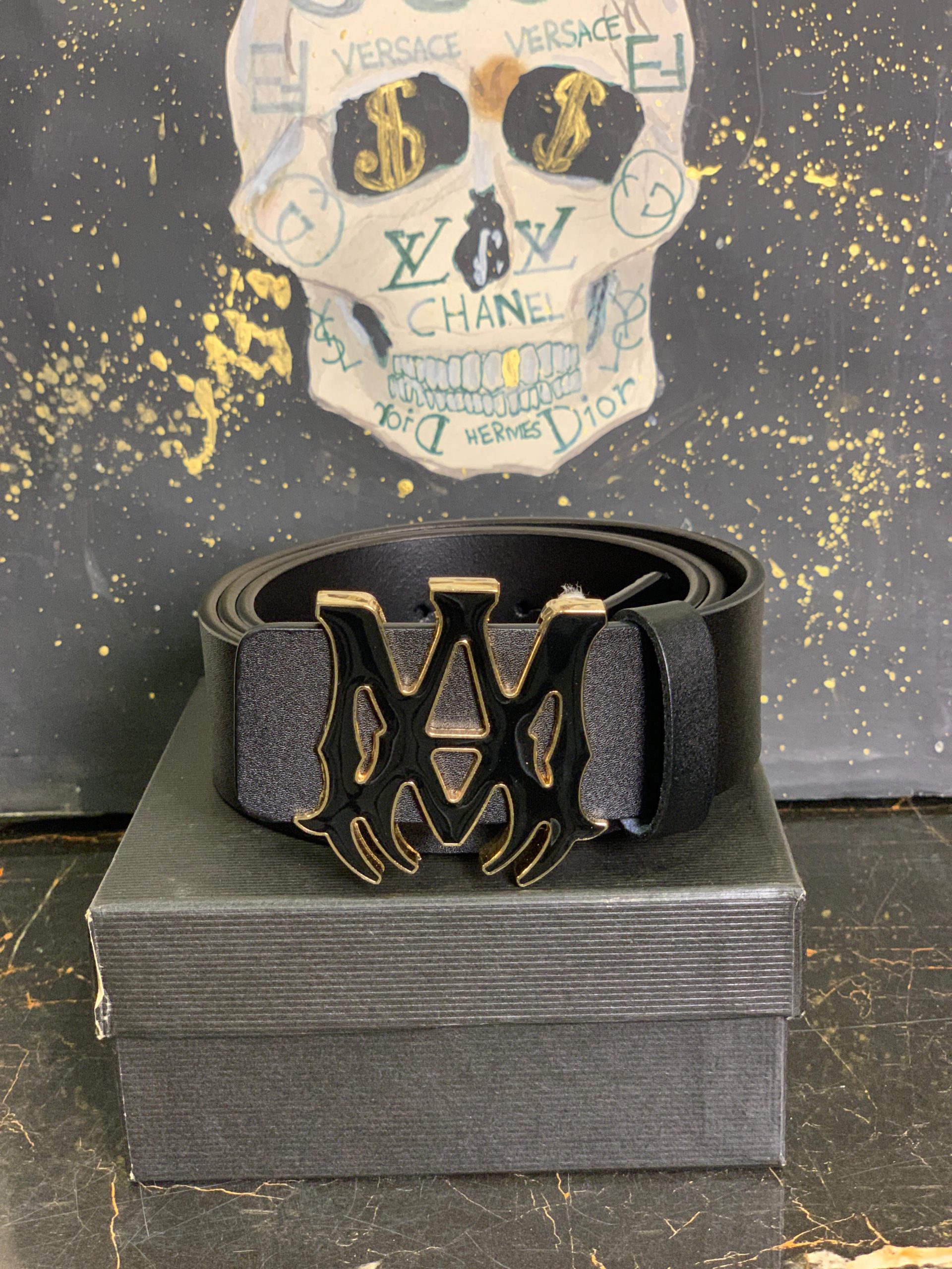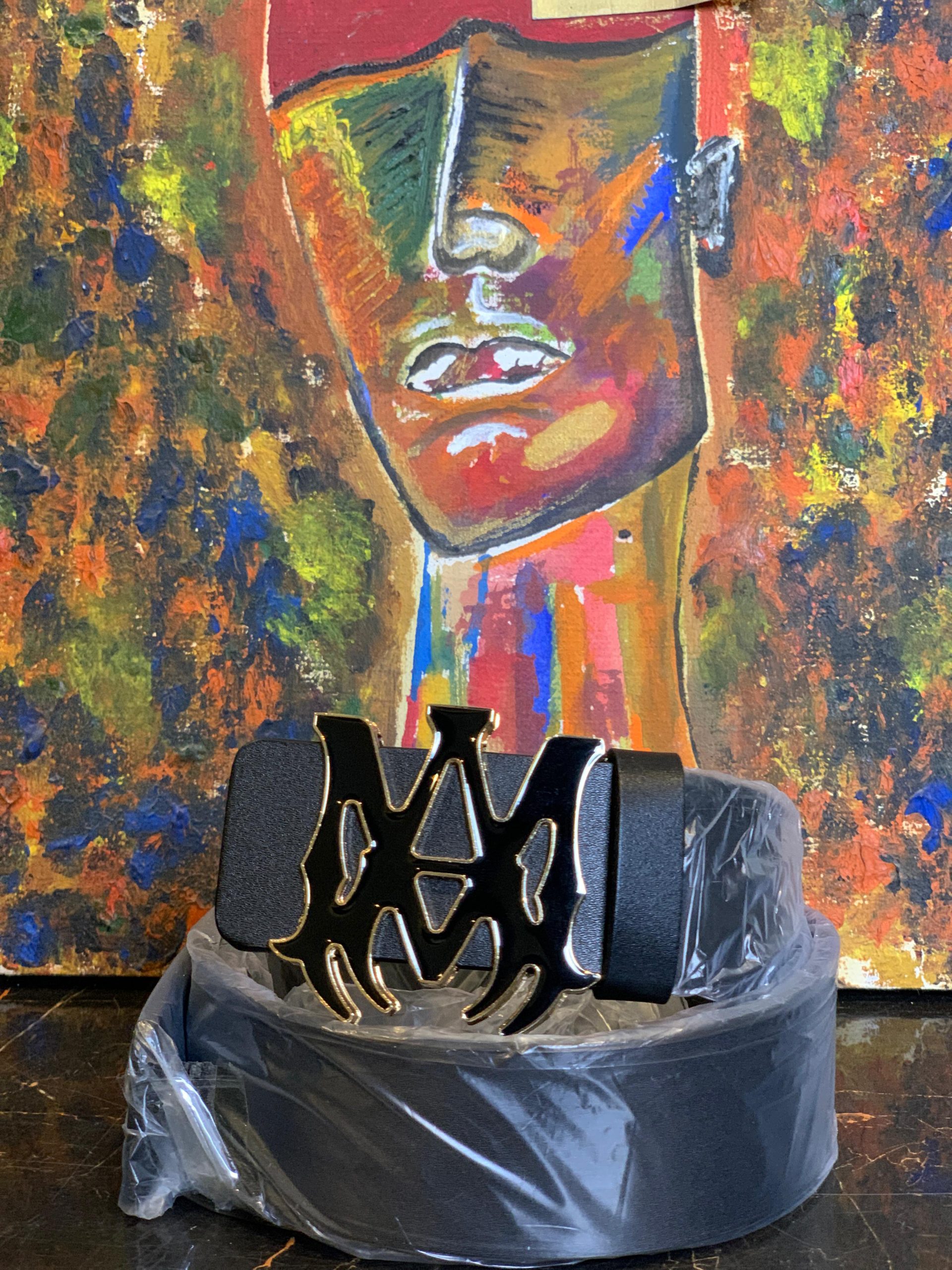 Crafted from smooth premium leather, this Amiri belt features a striking gold-tone logo buckle that adds bold luxury to any look. Designed for effortless style and standout appeal, it’s the perfect finishing touch for both streetwear and elevated fits.