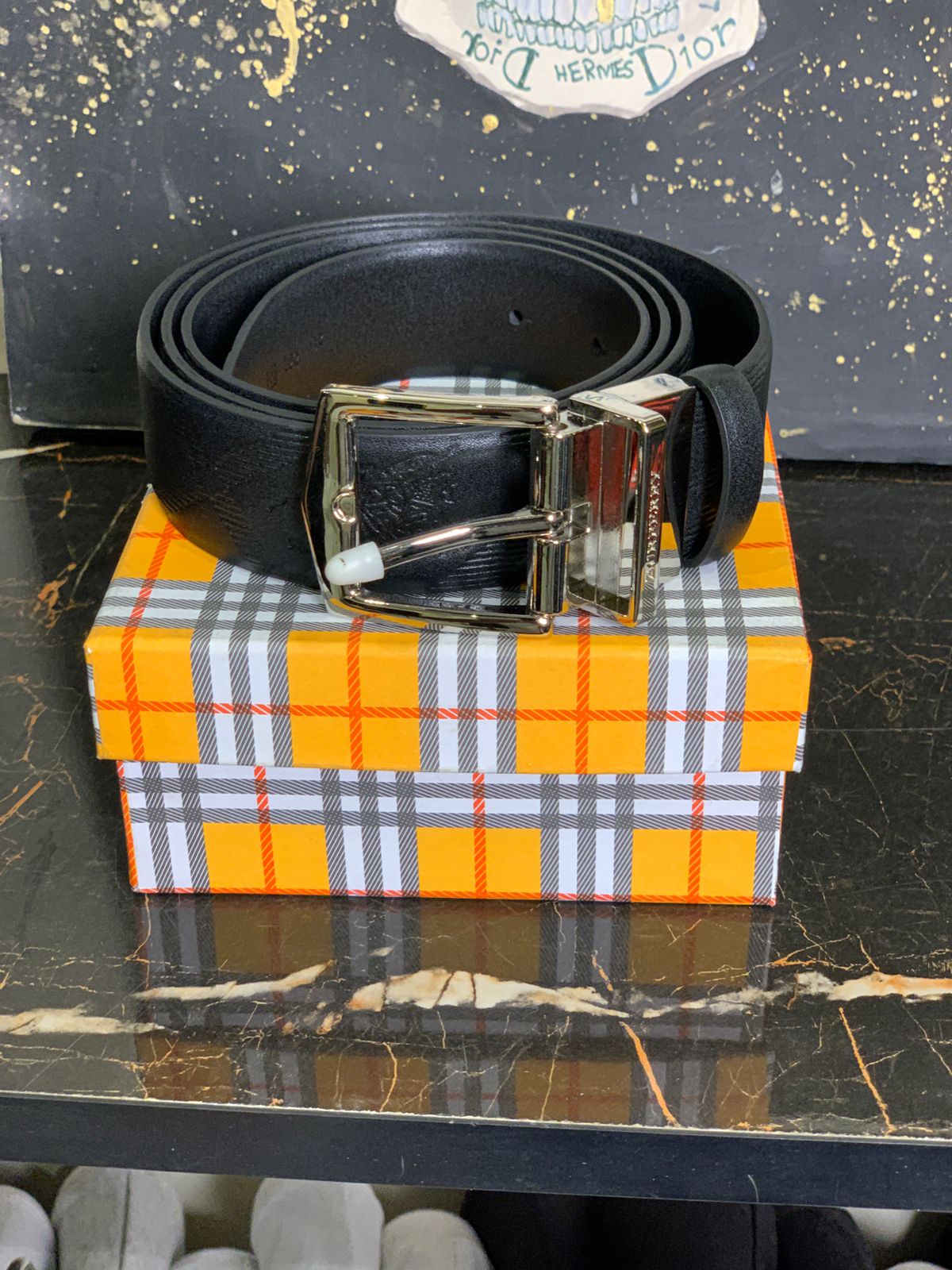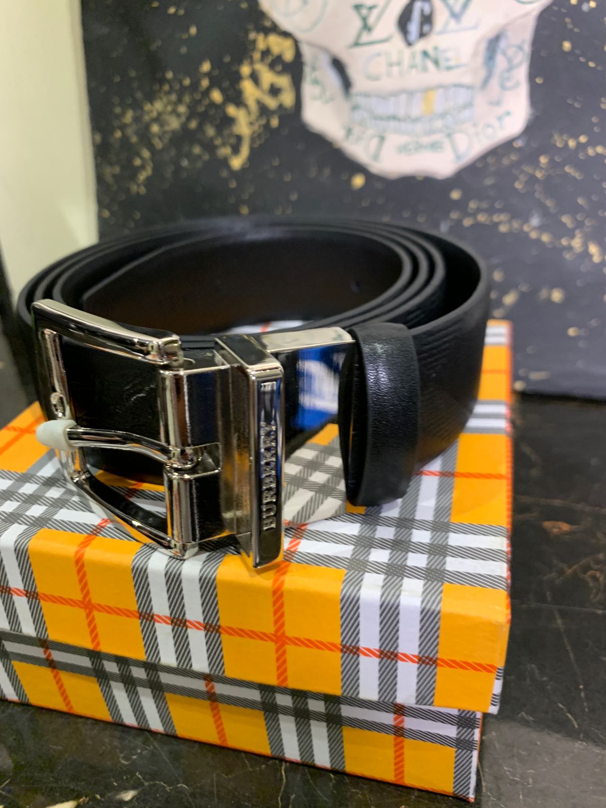 Sleek and versatile, this Burberry double-sided belt is crafted from premium black leather with subtle texture on one side and a smooth finish on the other. Designed for effortless rotation between smart and casual looks, it’s finished with a polished buckle for a refined touch of luxury.