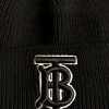 The Burberry Monogram TB Logo Knit Beanie in black is a timeless luxury accessory designed for comfort and sophistication. Made from a premium soft wool blend, this ribbed-knit beanie features the iconic Thomas Burberry “TB” monogram embroidered on the front in contrasting white. Its classic fold-over cuff ensures a snug fit and elevated streetwear edge. Perfect for both casual and refined winter looks, this beanie combines modern British heritage with understated style.