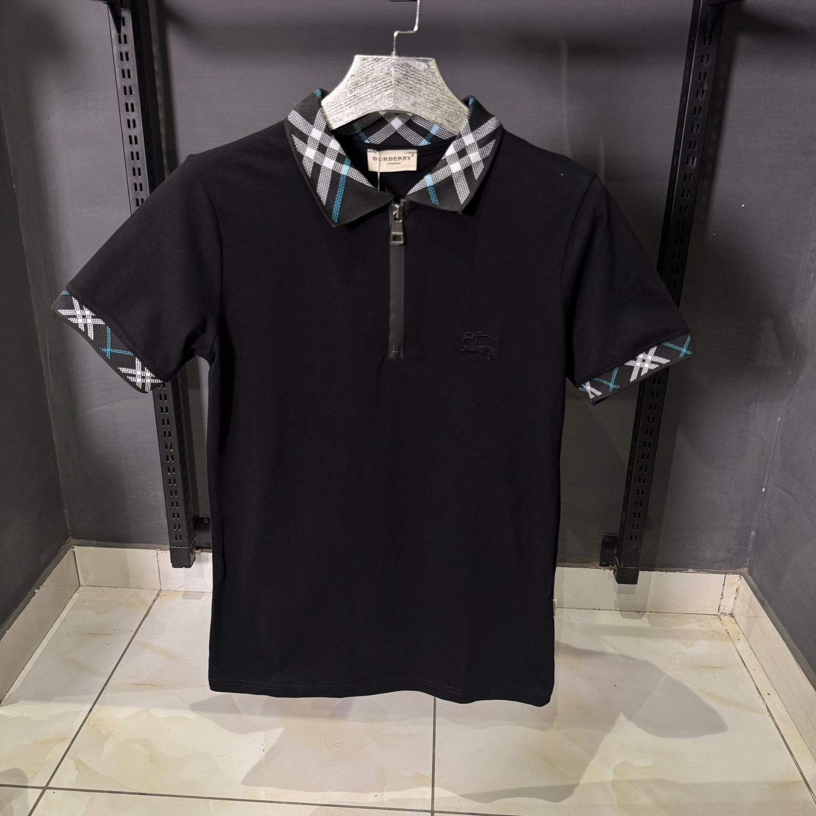 Elevate your smart-casual wardrobe with the Burberry Black Check Collar Polo. Featuring a signature Burberry check pattern on the collar and sleeve cuffs, this polo adds refined British flair to a classic silhouette. The zip-up neckline and subtle embroidered Burberry logo on the chest complete the look with modern sophistication.