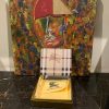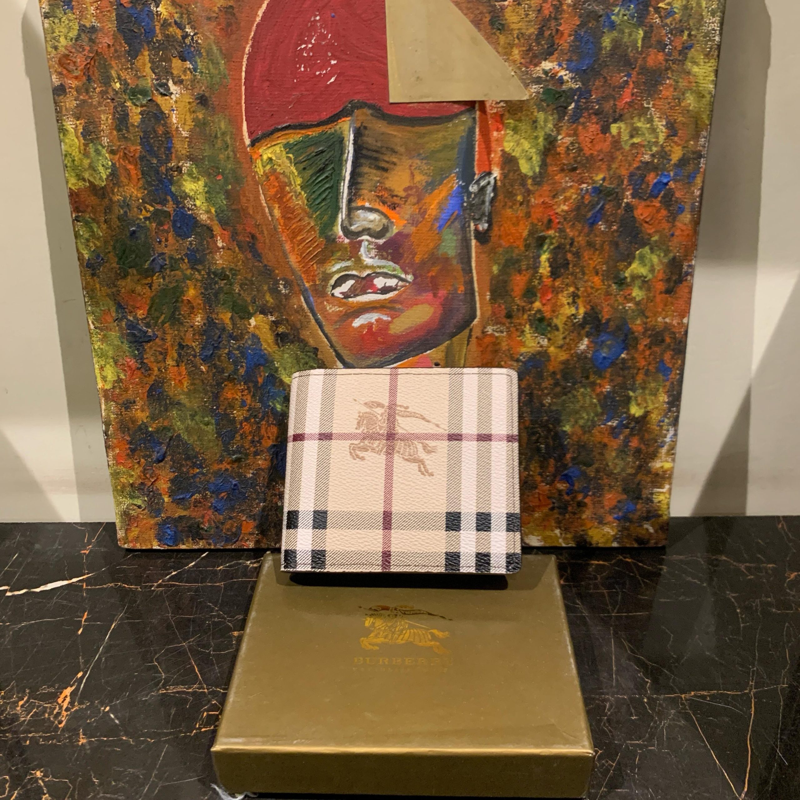 This chic cream-colored Burberry wallet features the brand’s signature check pattern, with fine lines running through the design for a modern twist. Its neutral tone and sophisticated pattern make it the perfect accessory for any occasion.