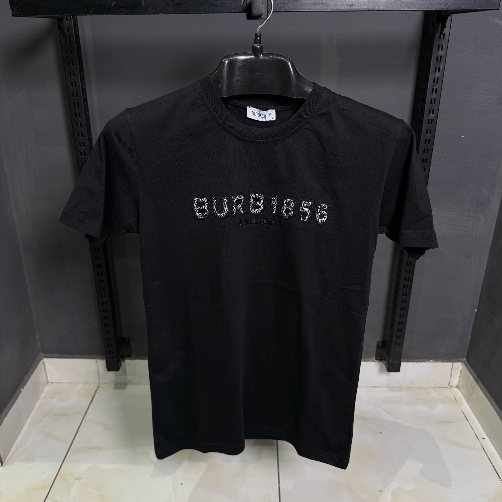 This Burberry black T-shirt combines classic simplicity with refined detailing. Featuring a finely embroidered Burberry logo on the chest, it subtly reflects the brand’s British heritage and luxury appeal. Made from premium cotton, the shirt offers a soft, breathable feel with a tailored yet comfortable fit. Its timeless crew neckline and short sleeves make it an essential wardrobe piece, perfect for elevating everyday casual wear with a touch of elegance