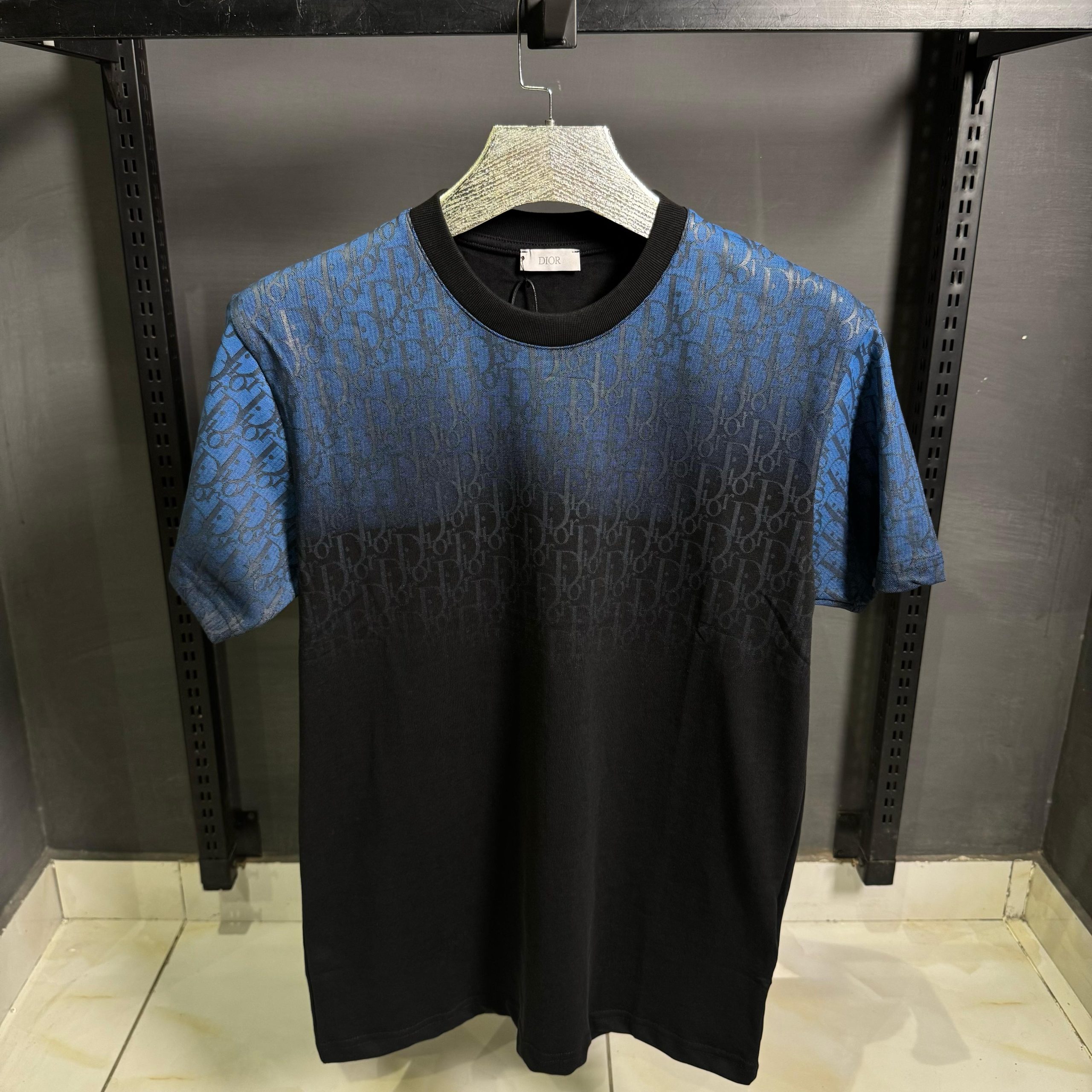 Step into the world of high fashion with the Dior Blue Gradient Oblique Black T-Shirt. Featuring Dior’s signature Oblique pattern in a striking blue gradient, this t-shirt blends timeless elegance with contemporary style. Crafted from premium black cotton, it offers both comfort and luxury, making it a versatile addition to any wardrobe. The gradient design adds a dynamic edge to the classic black base, making it the perfect statement piece for fashion-forward individuals.