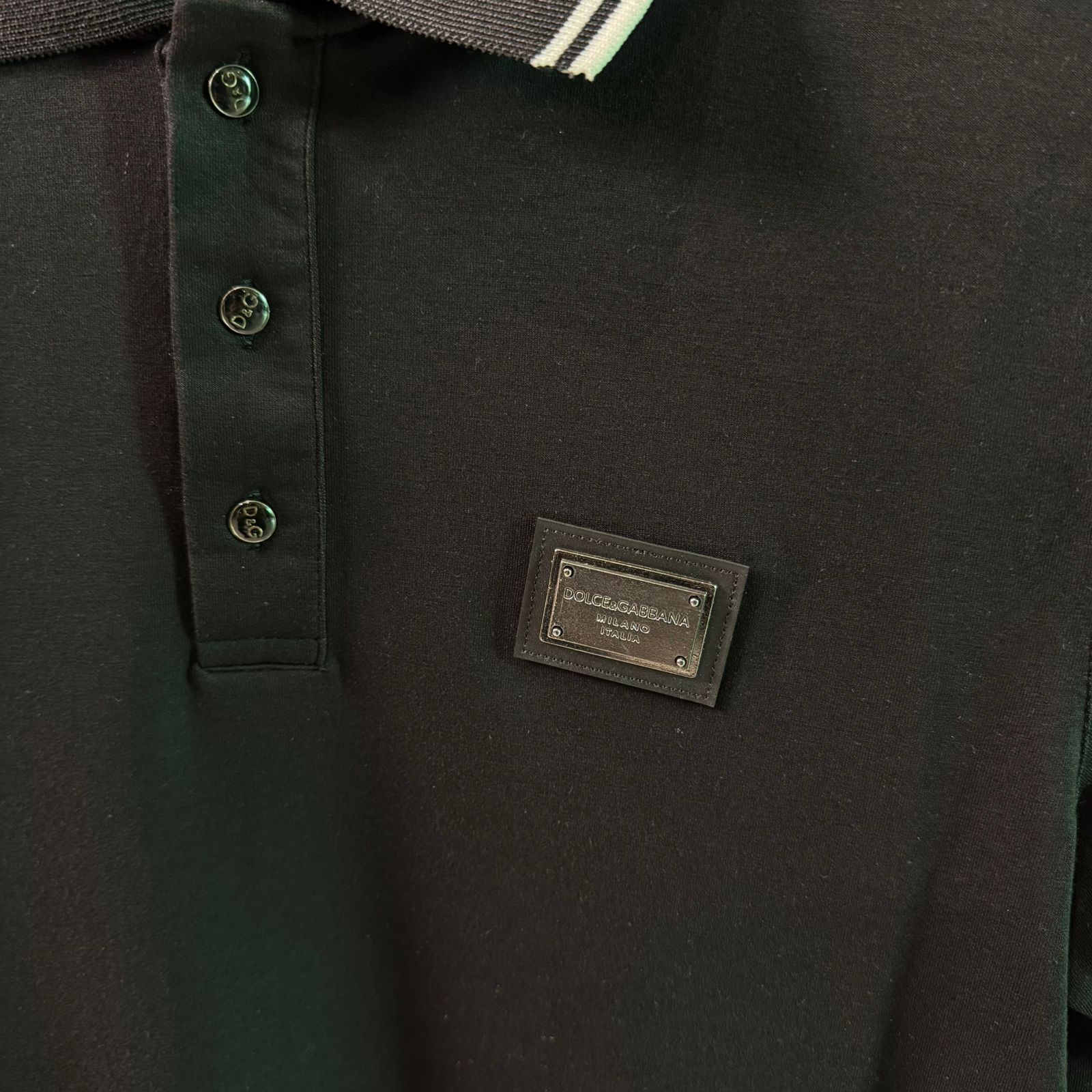 Refined and effortlessly stylish, the Dolce & Gabbana Black Polo T-Shirt is a true wardrobe essential. Designed with premium cotton fabric, it offers a smooth, tailored fit that ensures all-day comfort. With its sleek black color and subtle branding, this polo shirt reflects luxury and modern elegance—perfect for upscale casual wear.