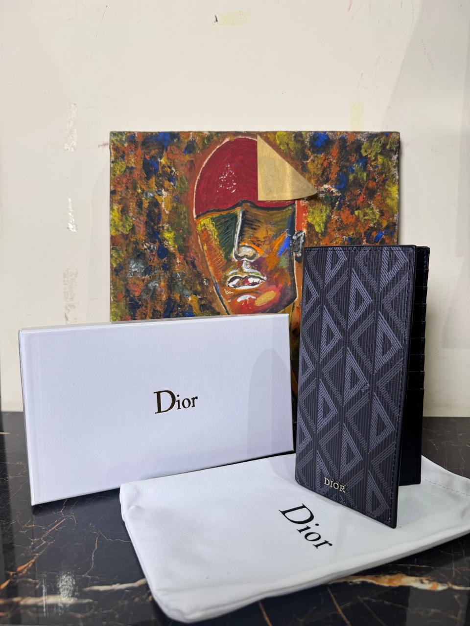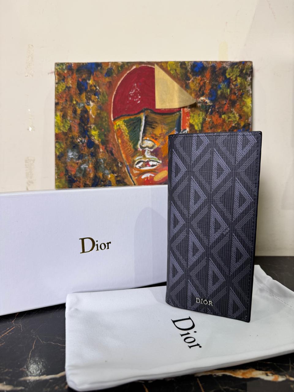 Design: Vertical bifold construction with ruthenium-finish “DIOR” signature.