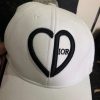 Dior White Heart Logo Cap – White cotton cap with a black embroidered heart and Dior lettering on the front, plus a Dior patch at the back. Comes with an adjustable strap for a comfortable fit.