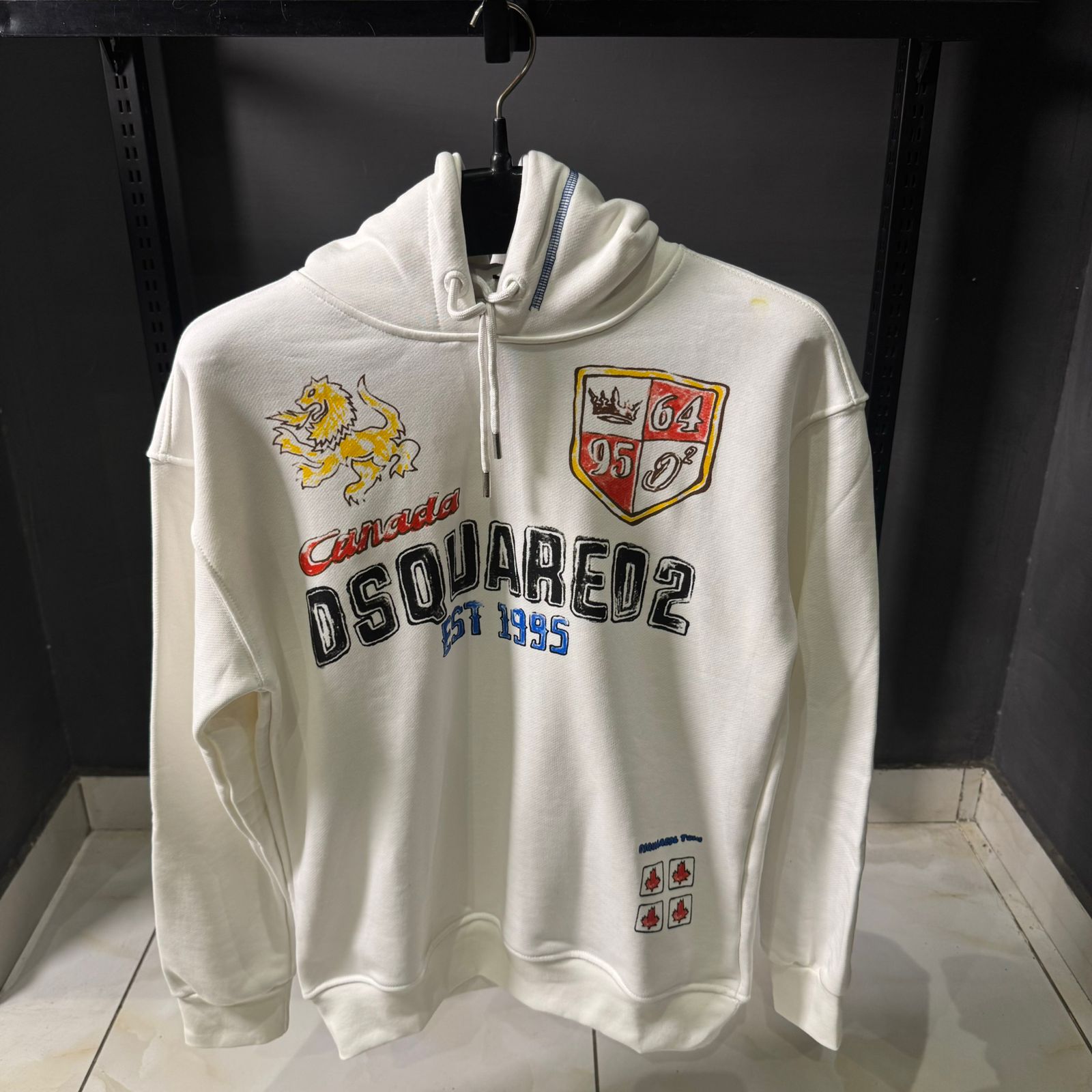 This Dsquared2 White Hoodie combines Canadian pride with luxury streetwear design. Crafted from premium cotton, it features the brand’s iconic “DSQUARED2 EST 1995” lettering across the chest, along with embroidered crest and lion graphics that highlight the brand’s bold and playful heritage. With its comfortable fit and eye-catching details, this hoodie is perfect for casual wear or statement street style.