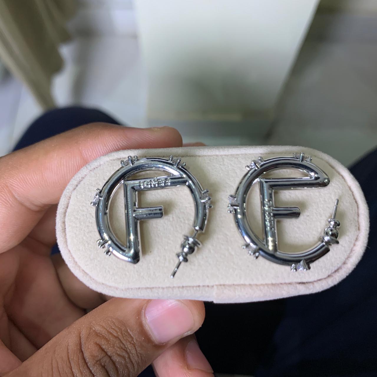 The “F is Fendi” Hoop Earrings feature the iconic Fendi logo in a sleek, circular design. Available in both gold and silver tones, these earrings offer a perfect balance of modern elegance and signature style—ideal for everyday wear or dressing up your look.