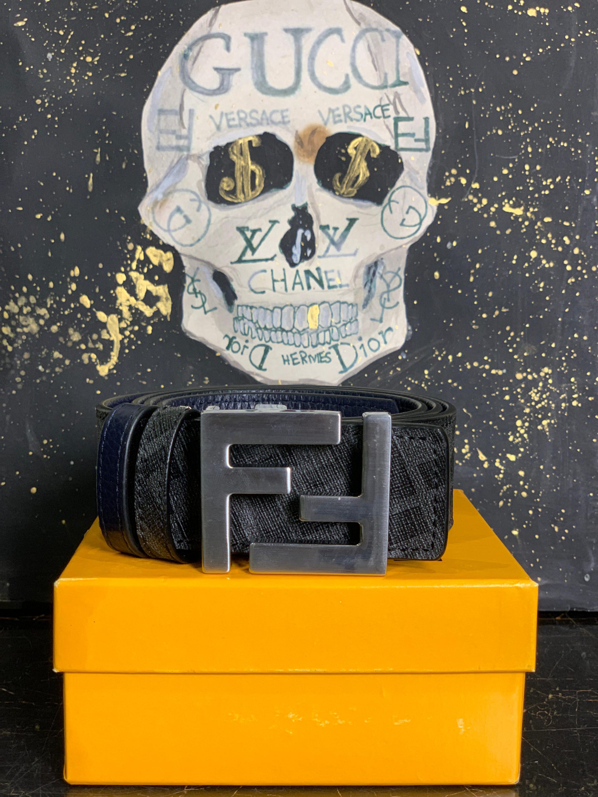 Make a powerful style statement with the Fendi Silver Buckle Belt. Crafted from quality black leather and finished with the signature FF logo buckle in silver, it’s a perfect balance of luxury and edge.