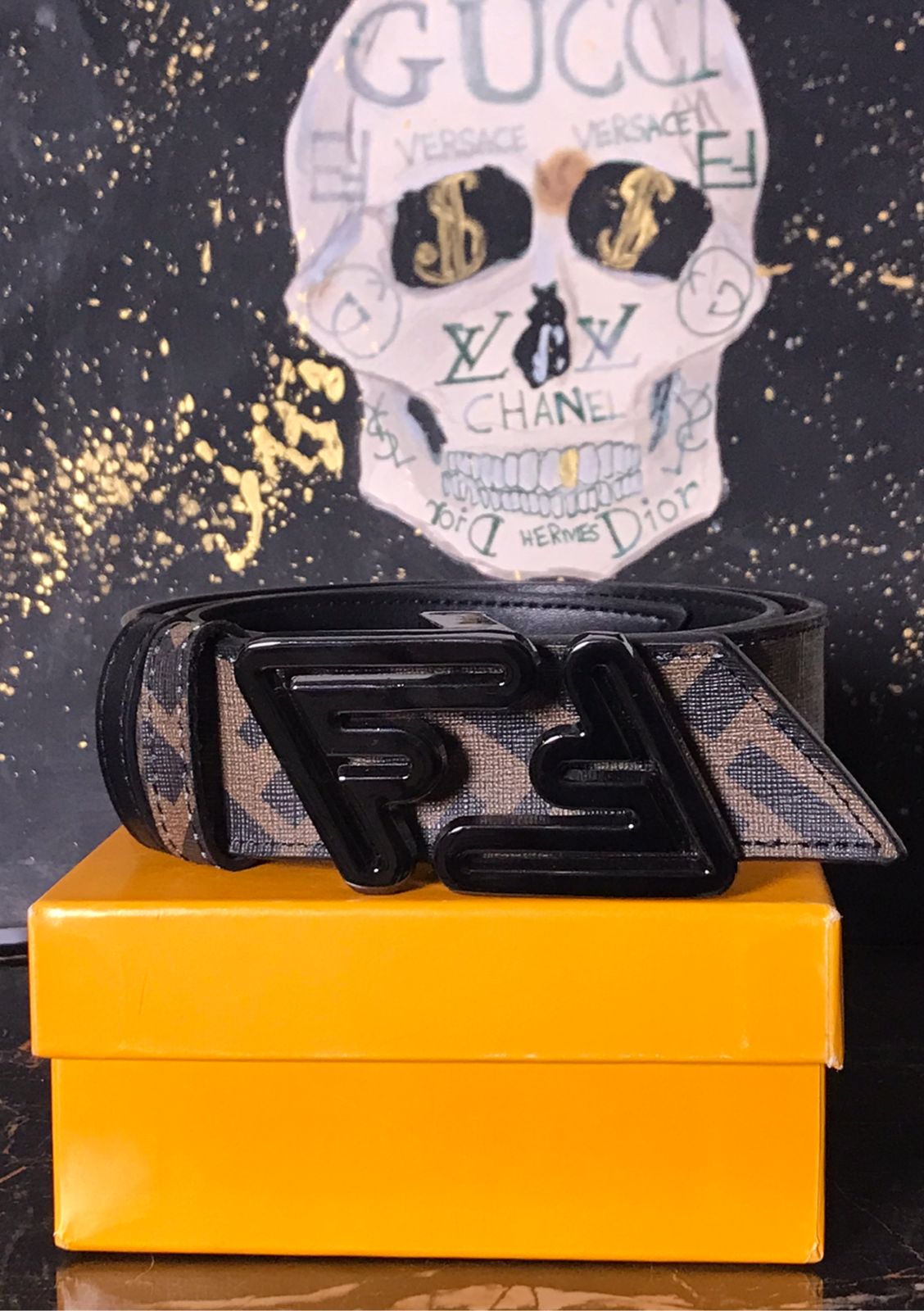 Keep it sharp with the Fendi FF Black Belt. Made from smooth black leather and finished with the bold FF logo buckle, it’s the perfect accessory for a clean, luxury look.