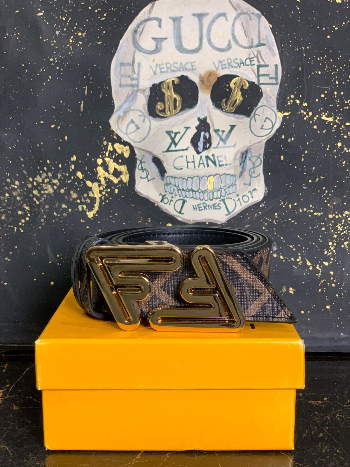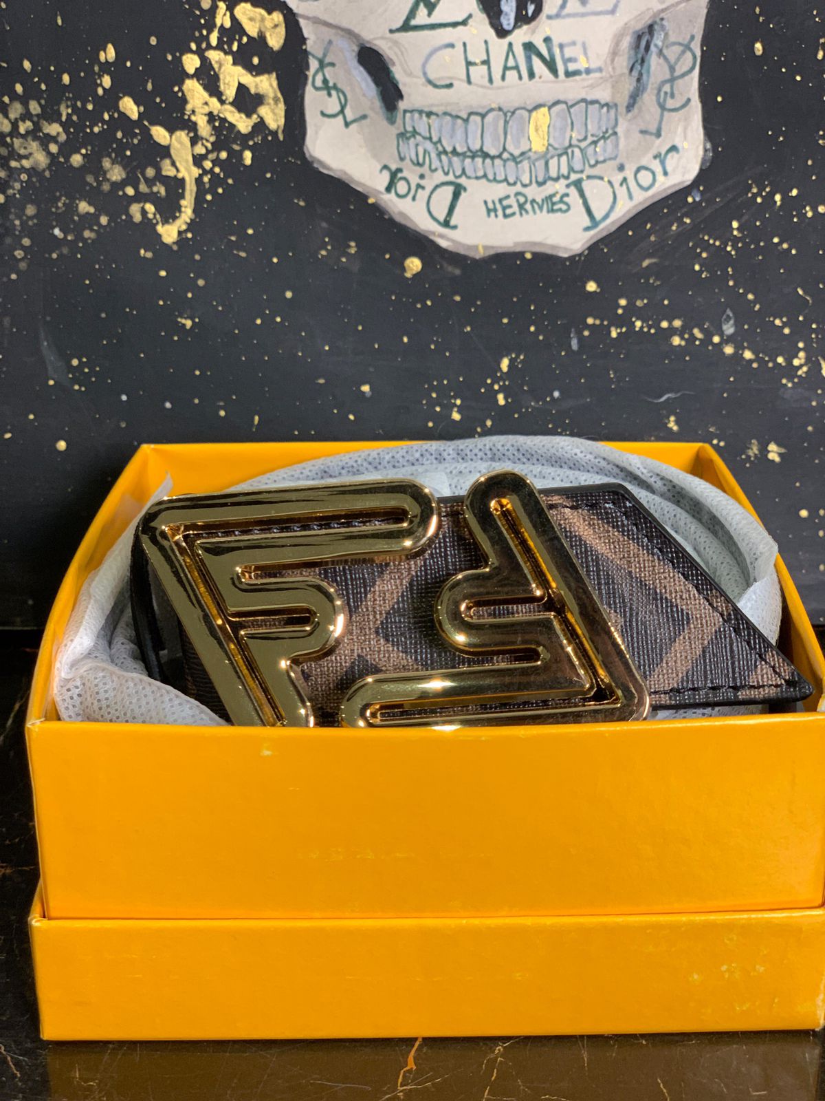 Upgrade your look with the Fendi FF Gold Belt. Made from high-quality leather in a reversible black and brown design, it features the signature FF buckle in a polished gold finish — a perfect blend of style and function.