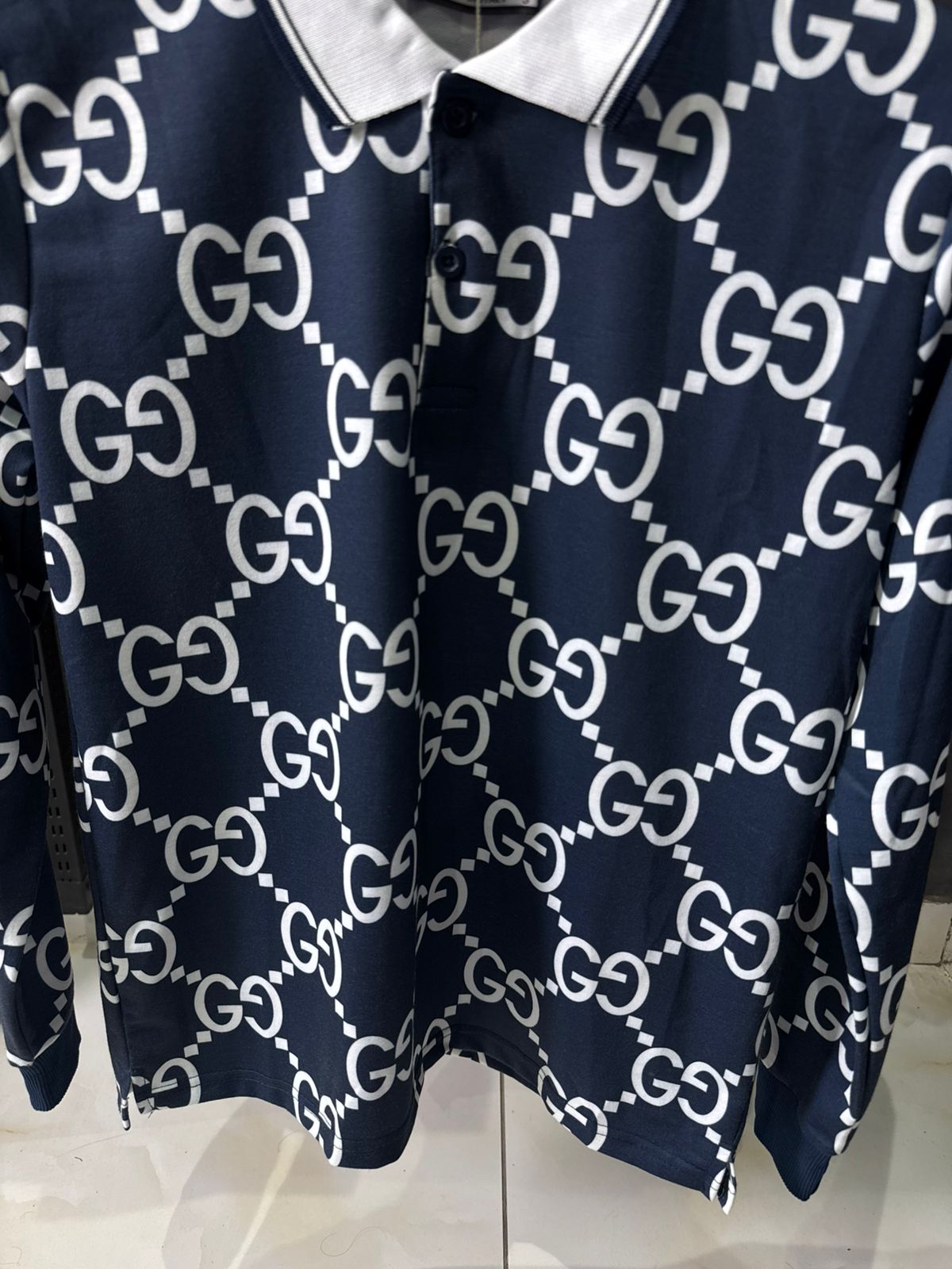 GC Navy Blue Monogram Long Sleeve Polo Shirt