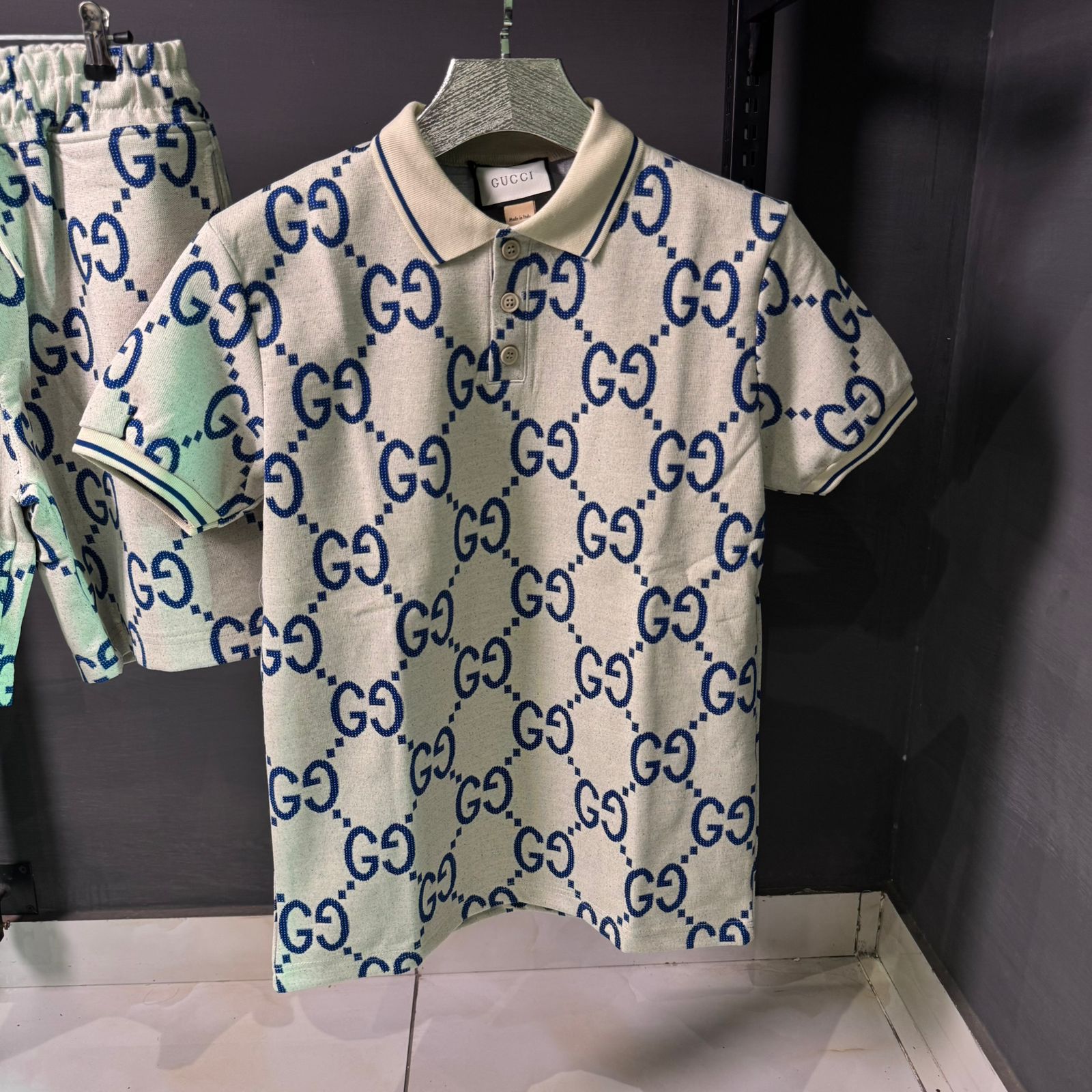 Add luxury to your loungewear with the GG Monogram Allover Print Shot Set. Featuring the iconic GG monogram pattern across the entire set, this combination of shorts and matching top offers both comfort and style. Crafted from premium cotton, the relaxed fit and bold design make it the perfect piece for casual days or a chic, off-duty look with a touch of designer flair.