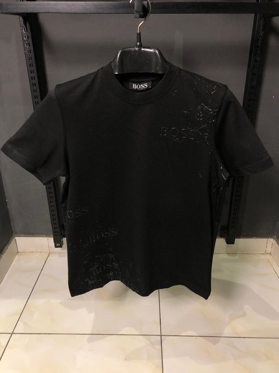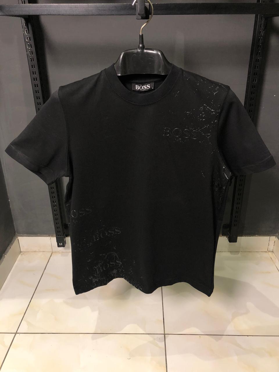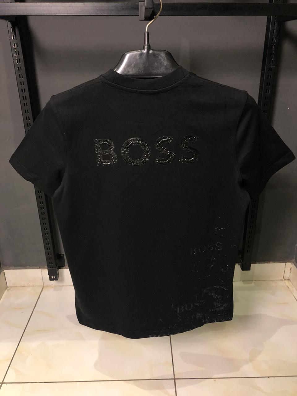 HU BOSS Black Glitch Logo Mixed Print T Shirt