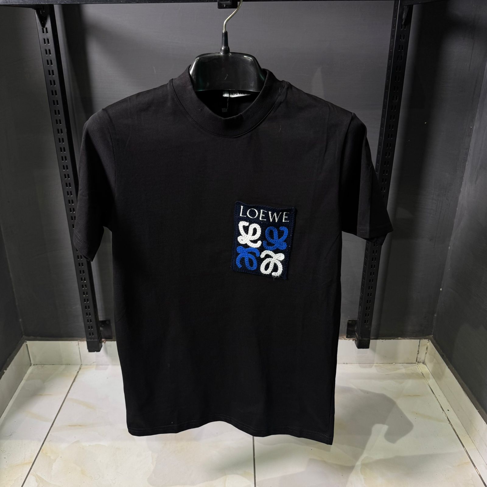 Loewe Front Pocket Logo Patch Black T-ShirtElevate your casual wardrobe with the Loewe Front Pocket Logo Patch Black T-Shirt. Crafted from high-quality cotton, this tee features a sleek black colorway and a subtle yet stylish front pocket adorned with the signature Loewe logo patch. The minimalist design, combined with its luxurious feel, makes it the perfect choice for effortless everyday style.