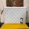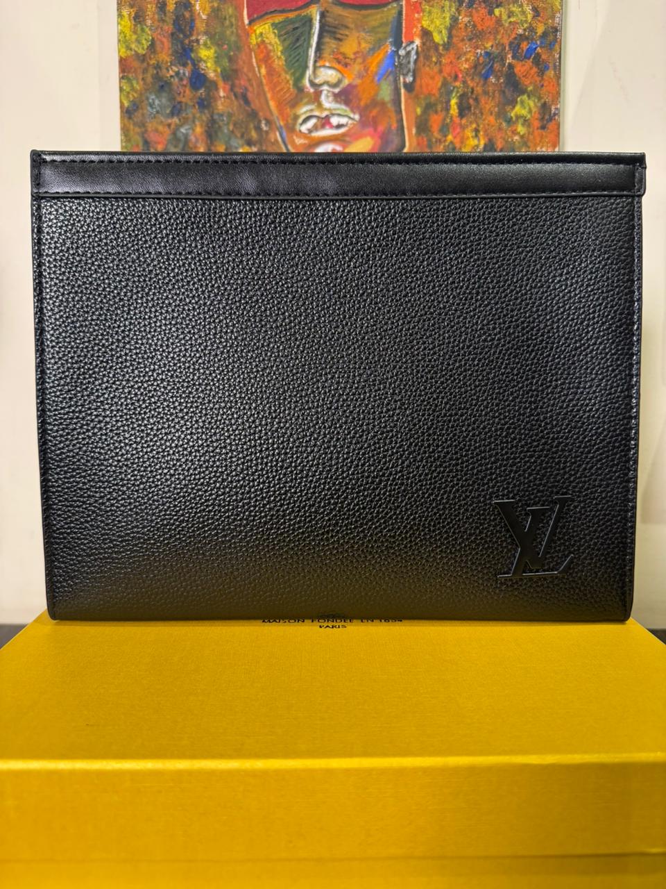 Elevate your essentials with the Louis Vuitton Aerogram Pouch. Premium black grained leather featuring a sleek metallic LV initials logo and a refined minimalist design.