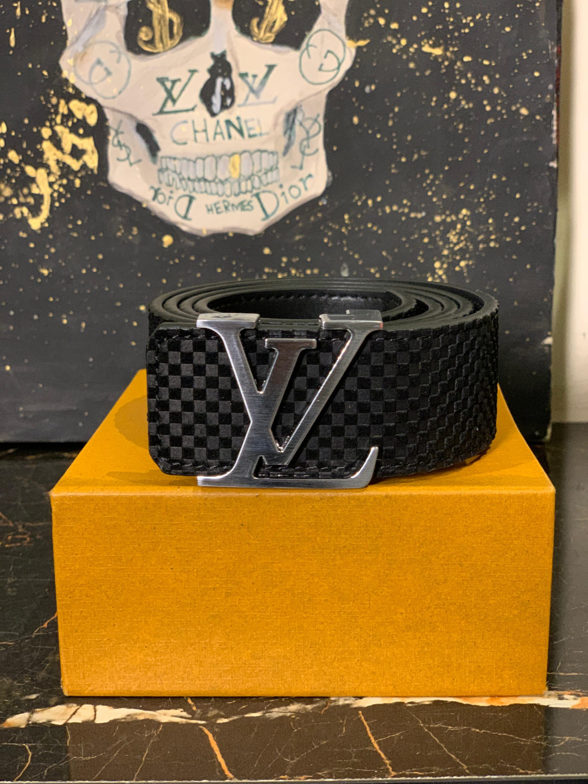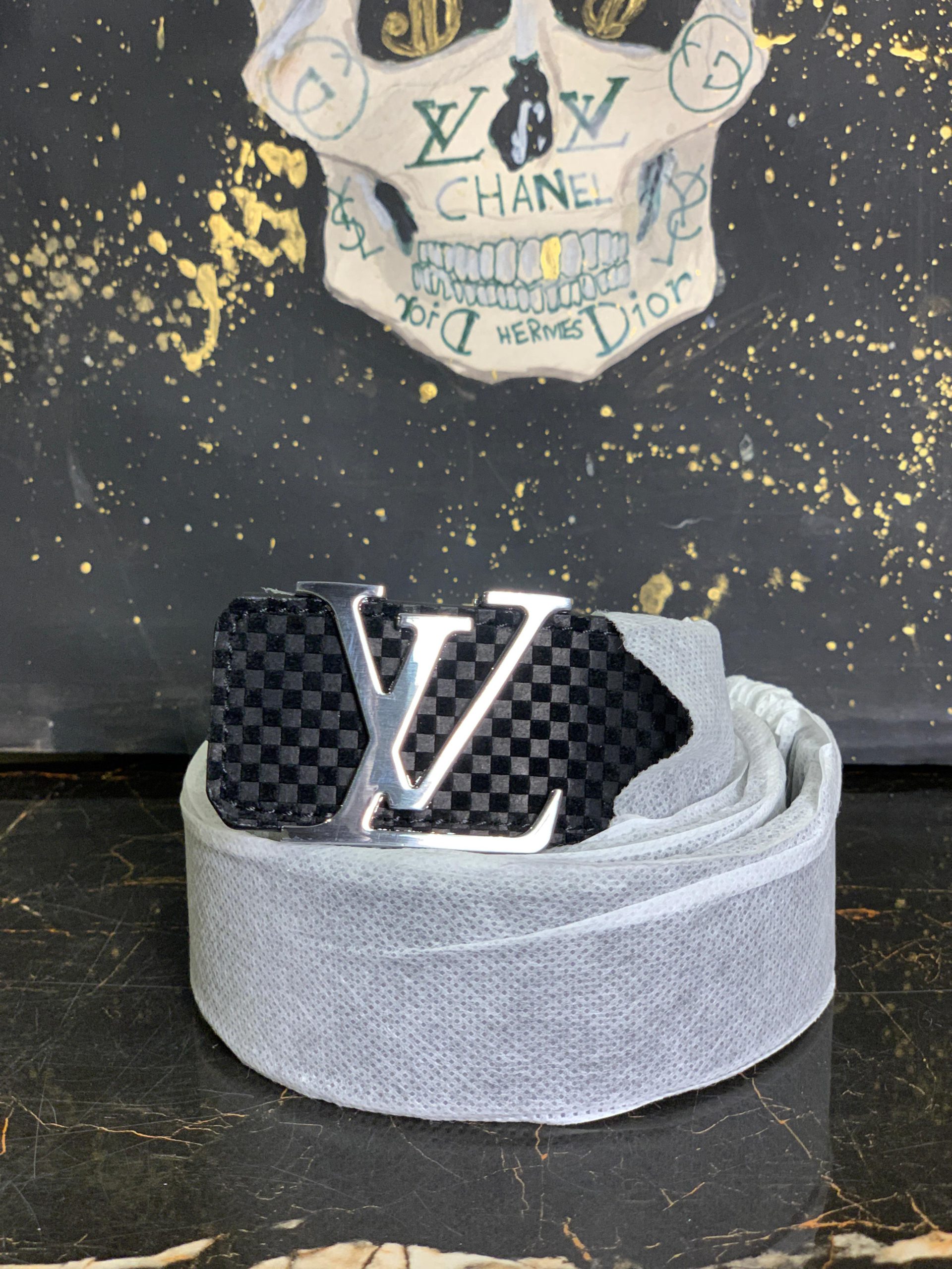 This premium velvet belt features a sleek silver and black LV buckle, blending bold elegance with modern style. The soft velvet texture adds a luxurious touch, making it a perfect statement piece for both casual and formal looks.