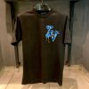 This eye-catching black T-shirt features a bold blue “LV” drip-style graphic on the chest, adding a modern and edgy twist to the classic Louis Vuitton branding. Made from soft, breathable cotton, it offers a regular fit with a ribbed crew neckline and short sleeves. Perfect for streetwear lovers, this tee brings together luxury and urban style in one standout piece.
