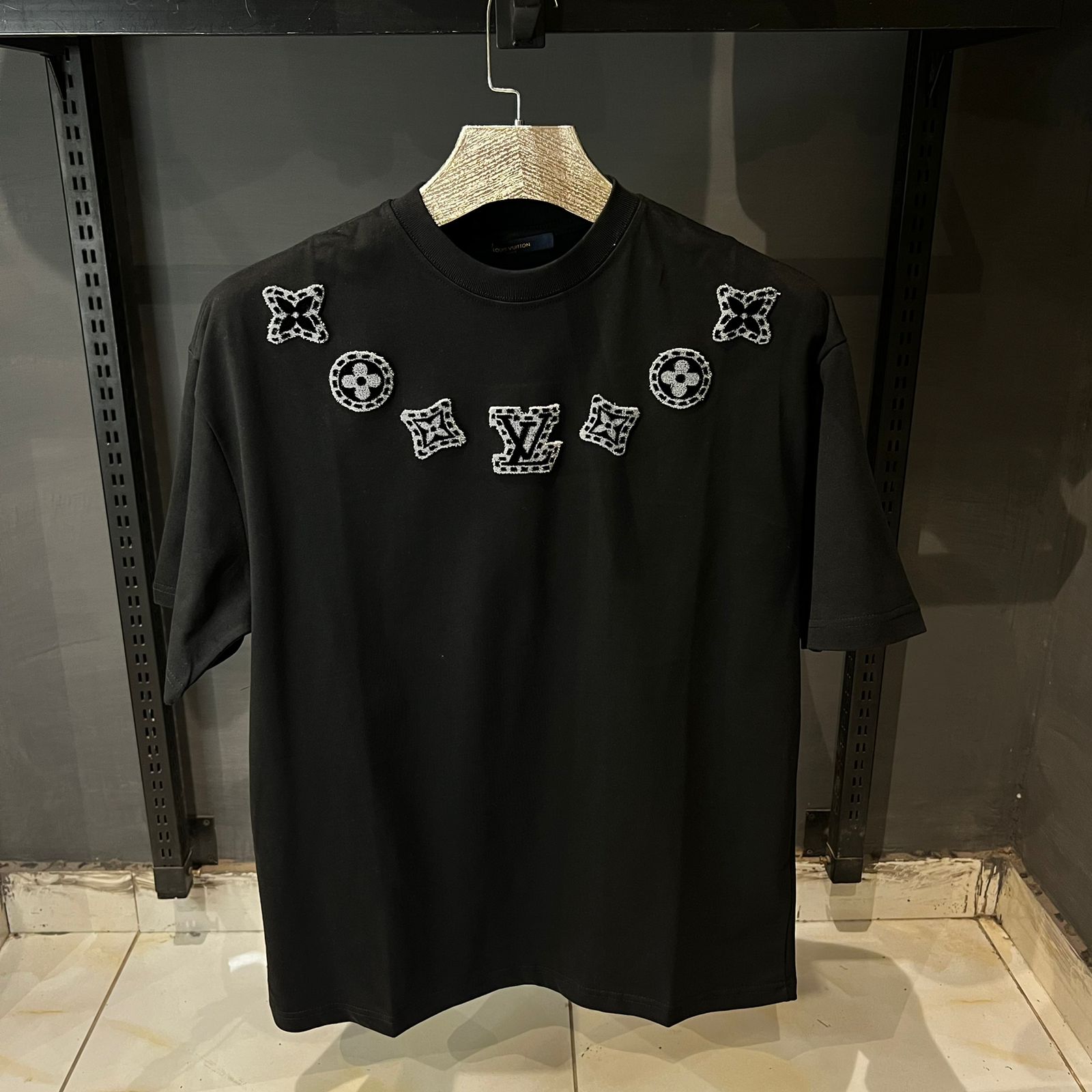 Louis V Black T Shirt With monogram Patches