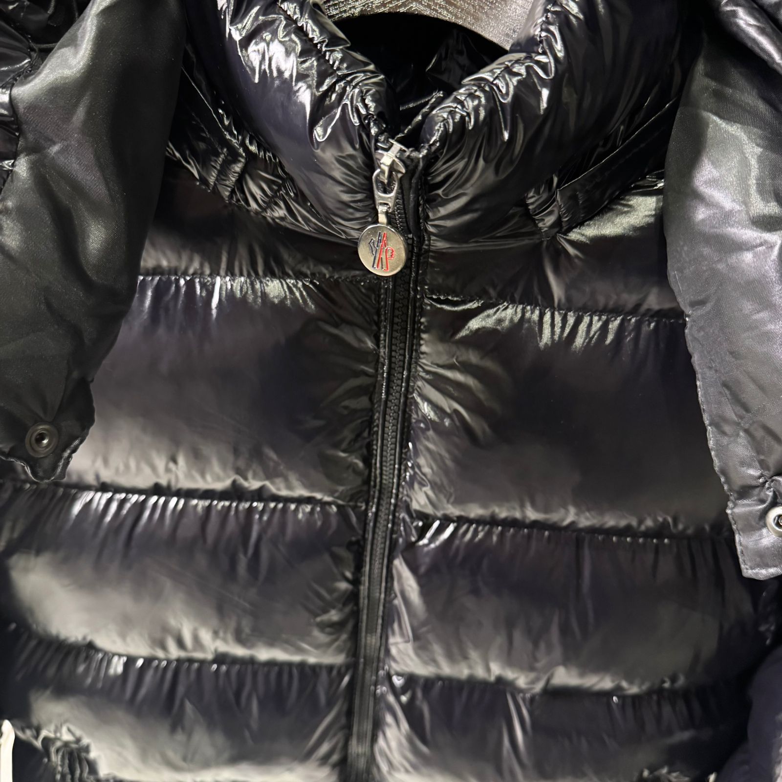 Designed with a baffle-quilted construction, this iconic puffer is filled with premium goose down for exceptional warmth-to-weight ratio. The piece features a detachable hood, two-way zip closure, zippered hand pockets, and a utility pocket on the sleeve adorned with the Moncler felt logo patch.