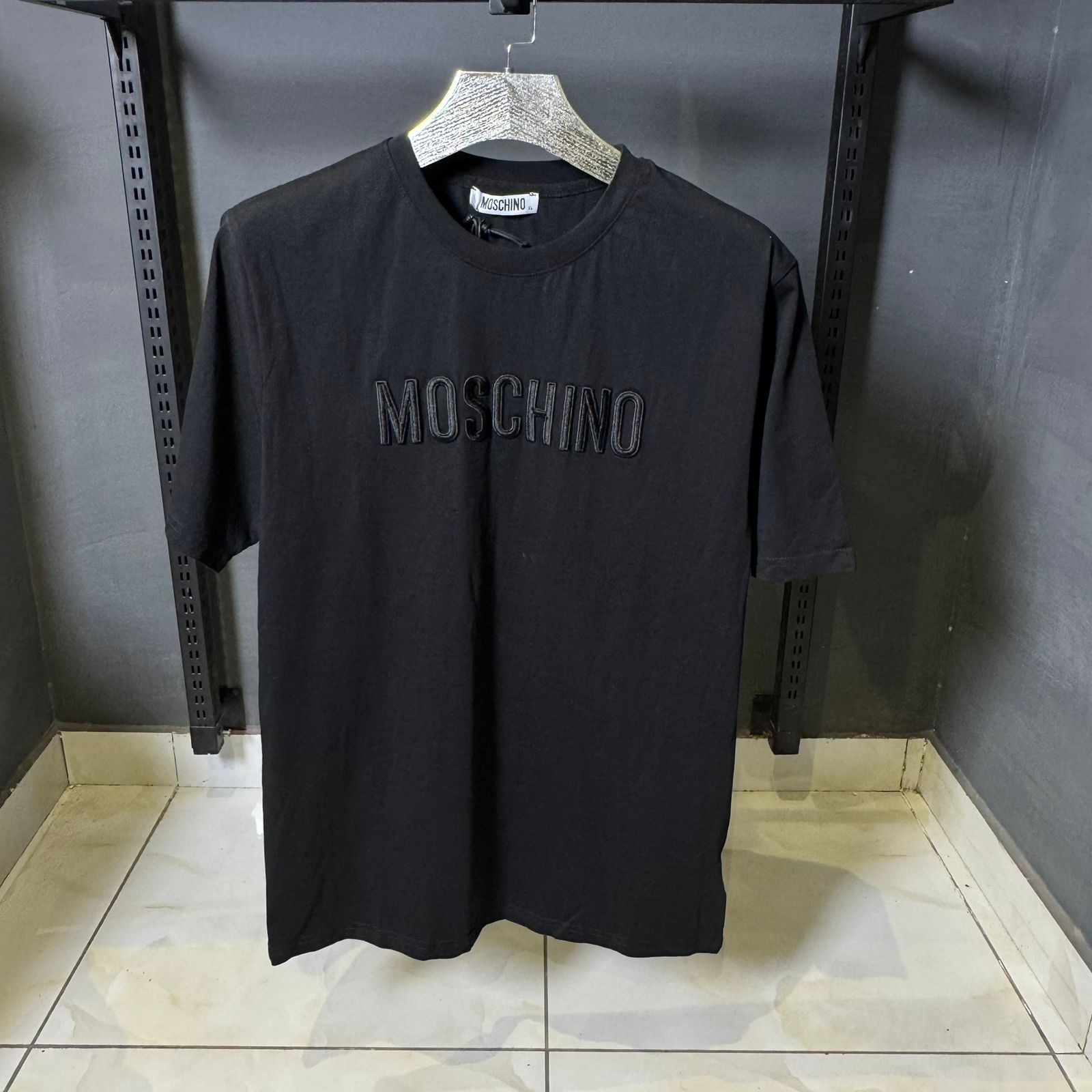 This Moschino black embroidered T-shirt is a stylish and modern piece, suitable for both men and women. It’s made from high-quality 100% cotton, offering comfort and breathability. The design is simple yet bold, featuring Moschino’s iconic embroidered logo on the chest, making it a standout fashion item.