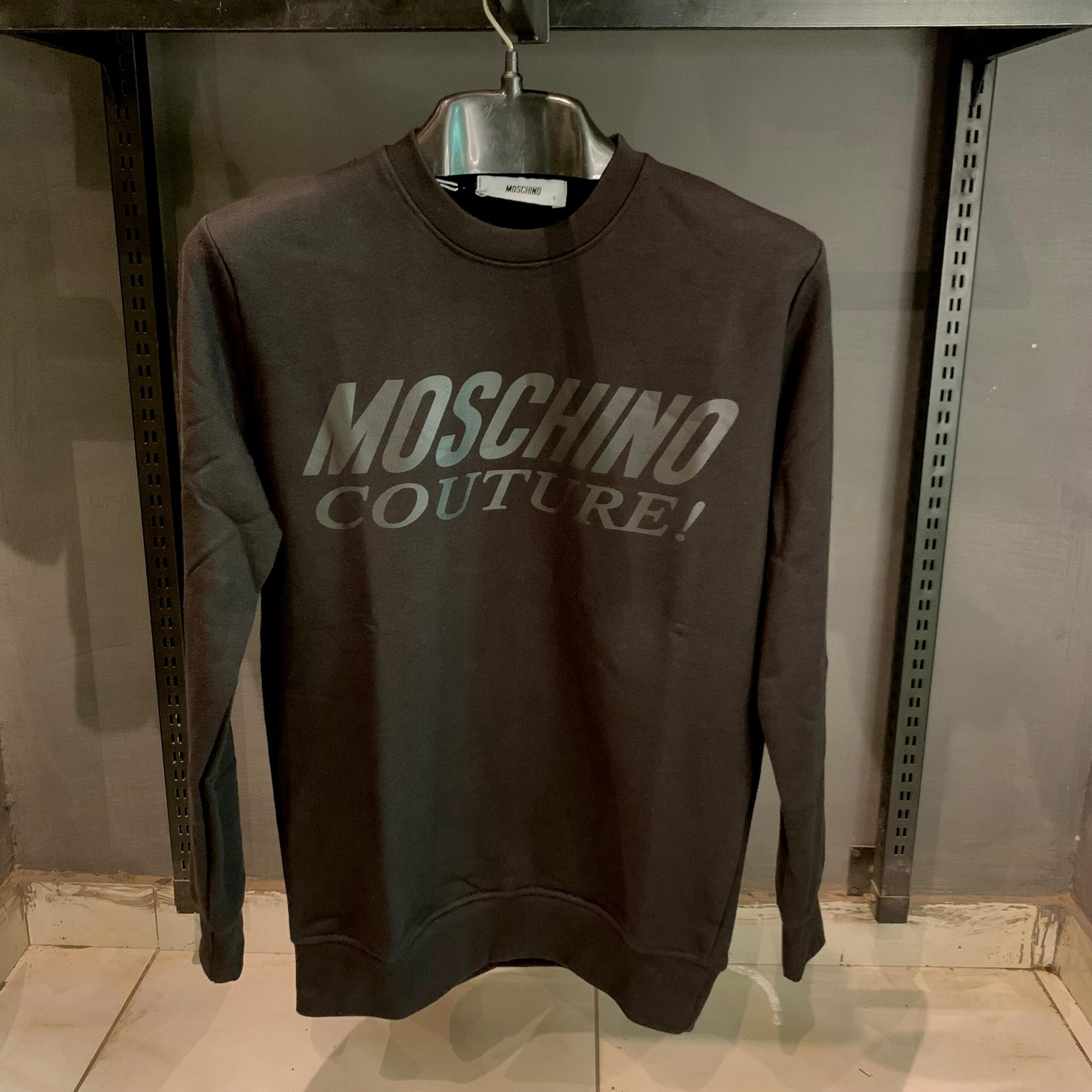 The Moschino Black Sweatshirt showcases a sleek printed “Moschino” logo on the front, while the back remains plain for a clean and contemporary finish. A stylish and versatile piece for any fashion-forward wardrobe.