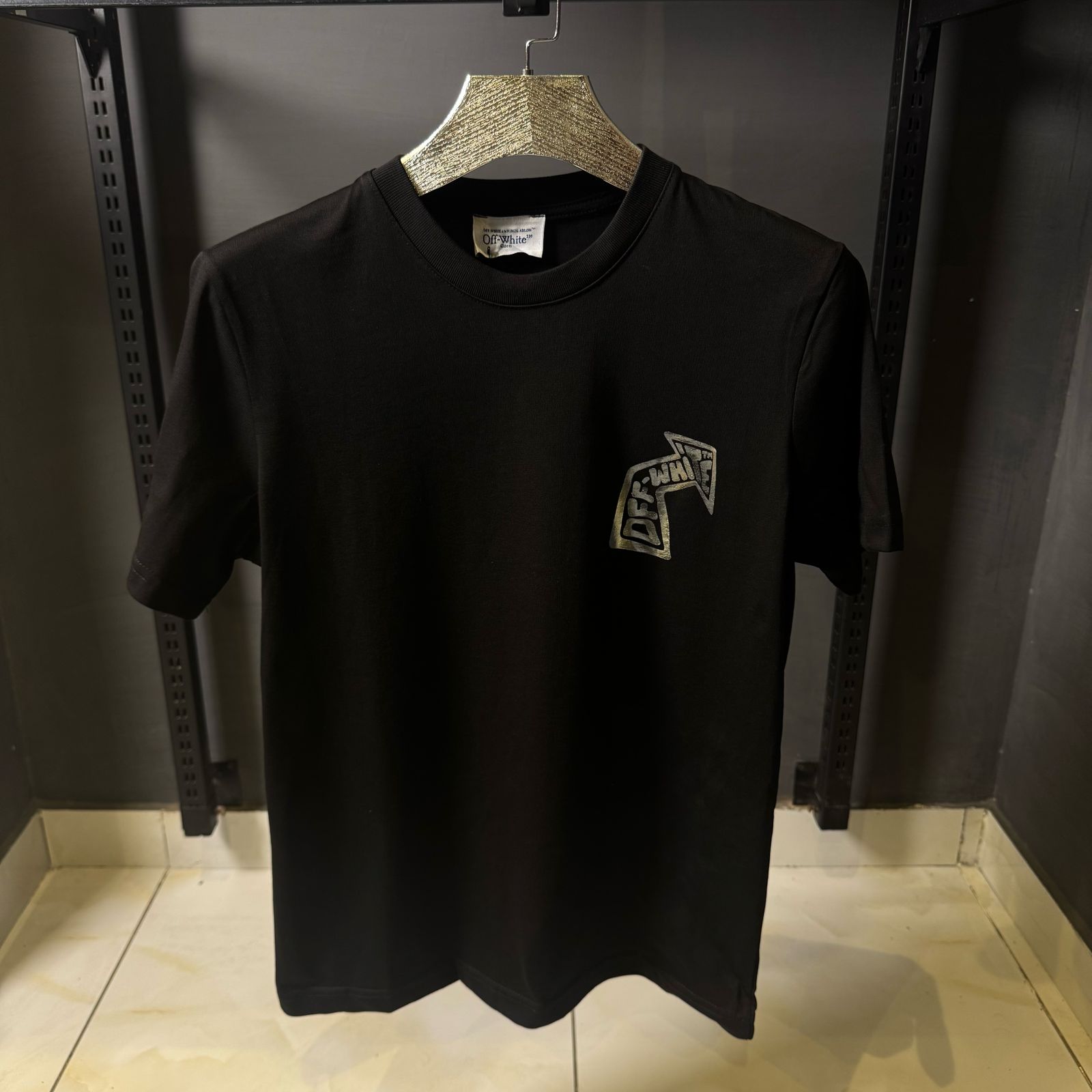 The black colorway gives it a sleek, minimalist look, while the oversized arrow graphic on the back or front (depending on the design) adds a distinctive, eye-catching element. The short-sleeve style is perfect for layering or wearing on its own, making it versatile for various occasions.• 300 gsm
