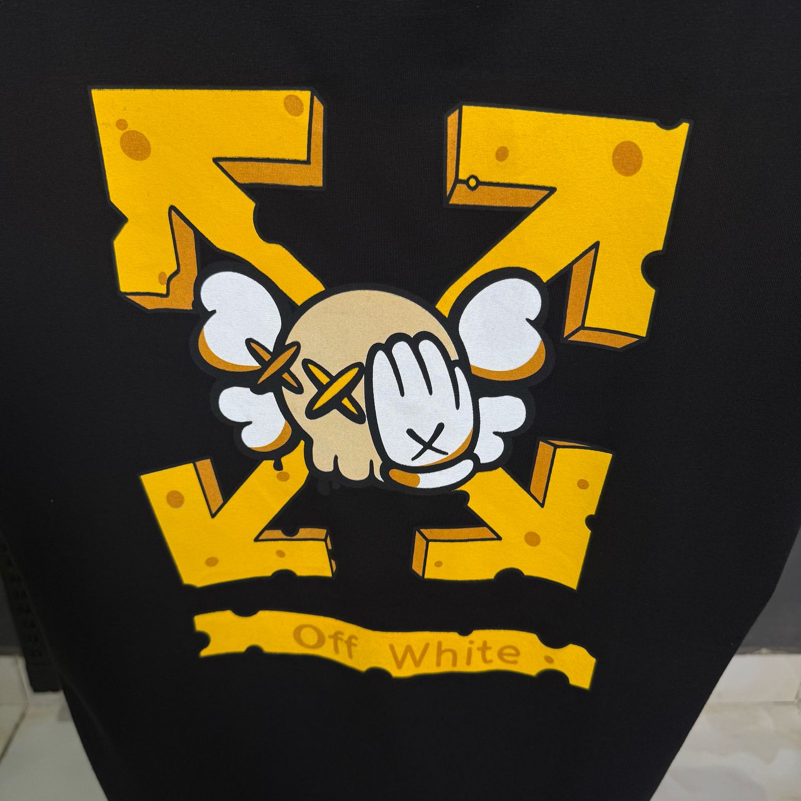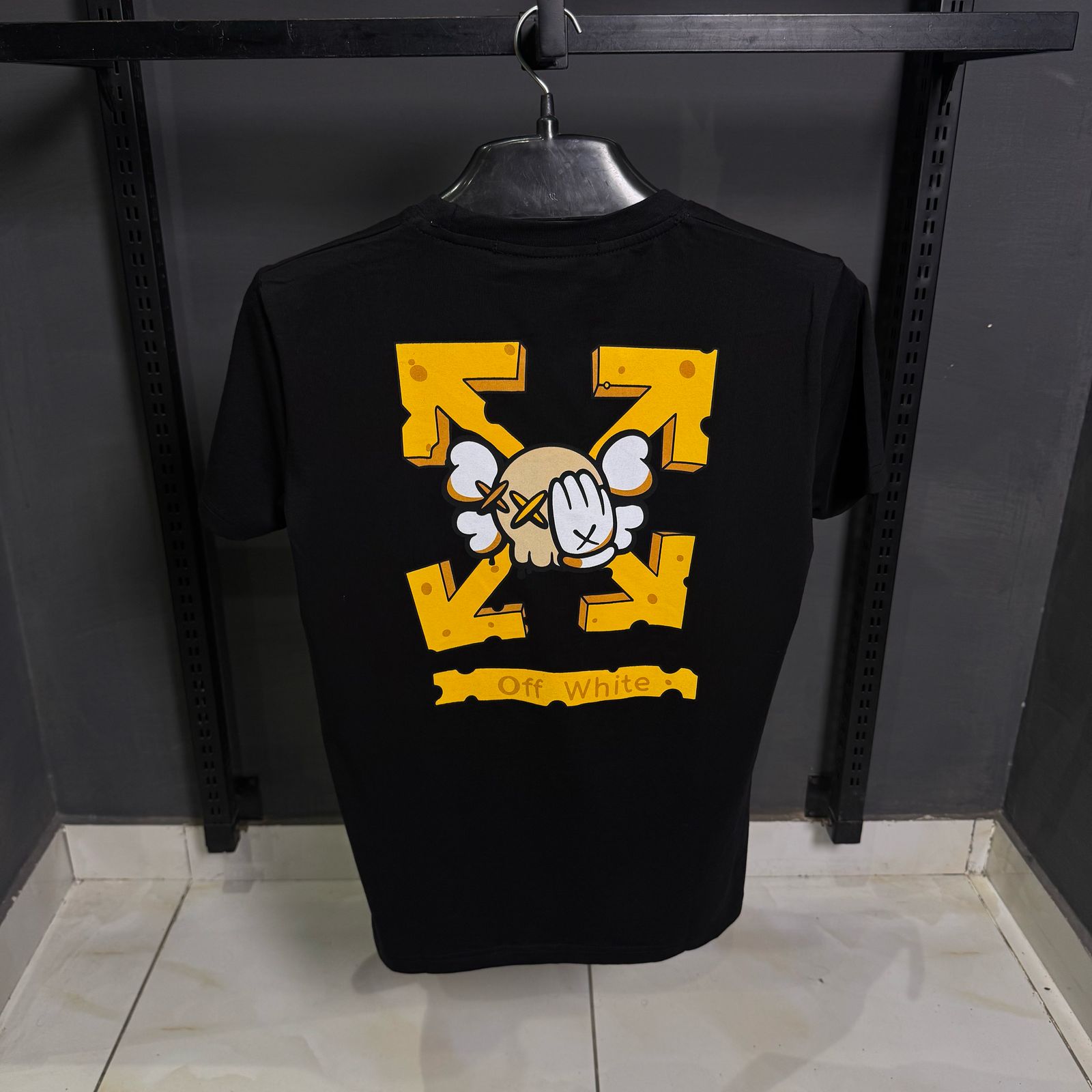 This Off-White black T-shirt features bold graphic prints that reflect the brand’s signature streetwear aesthetic. Designed with striking visual elements either on the front, back, or both, the T-shirt offers a modern, edgy look. Crafted from high-quality cotton, it ensures a soft, comfortable fit for everyday wear. The classic crew neck and short sleeve design make it a versatile piece that pairs effortlessly with jeans, joggers, or layered streetwear outfits.