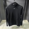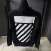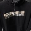 This black pullover hoodie from Off-White blends classic streetwear with a distinctive graphic element. It features the brand’s iconic “Off-White™” lettering prominently displayed on the chest, layered over a plaid or tartan-style patch—likely in beige/tan and black/grey tones. Made from a comfortable cotton fleece, the hoodie includes a kangaroo pocket and drawstring hood, combining everyday comfort with Virgil Abloh’s signature graphic-heavy, deconstructed design ethos.