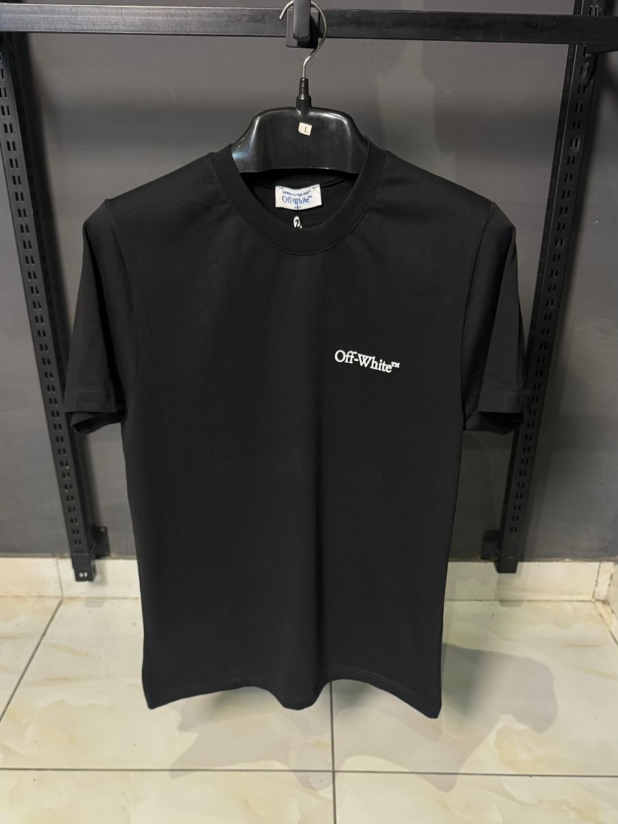 Define your style with the signature industrial aesthetic of Virgil Abloh. This Off-White™ T-Shirt features a minimalist, high-contrast logo on the chest, paired with a bold, oversized abstract paint-splatter graphic across the back. The monochromatic black-and-white design captures the brand’s unique “work-in-progress” philosophy, making it a standout piece in any luxury streetwear collection.