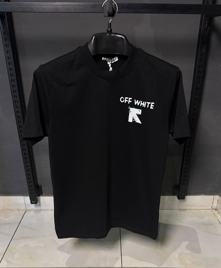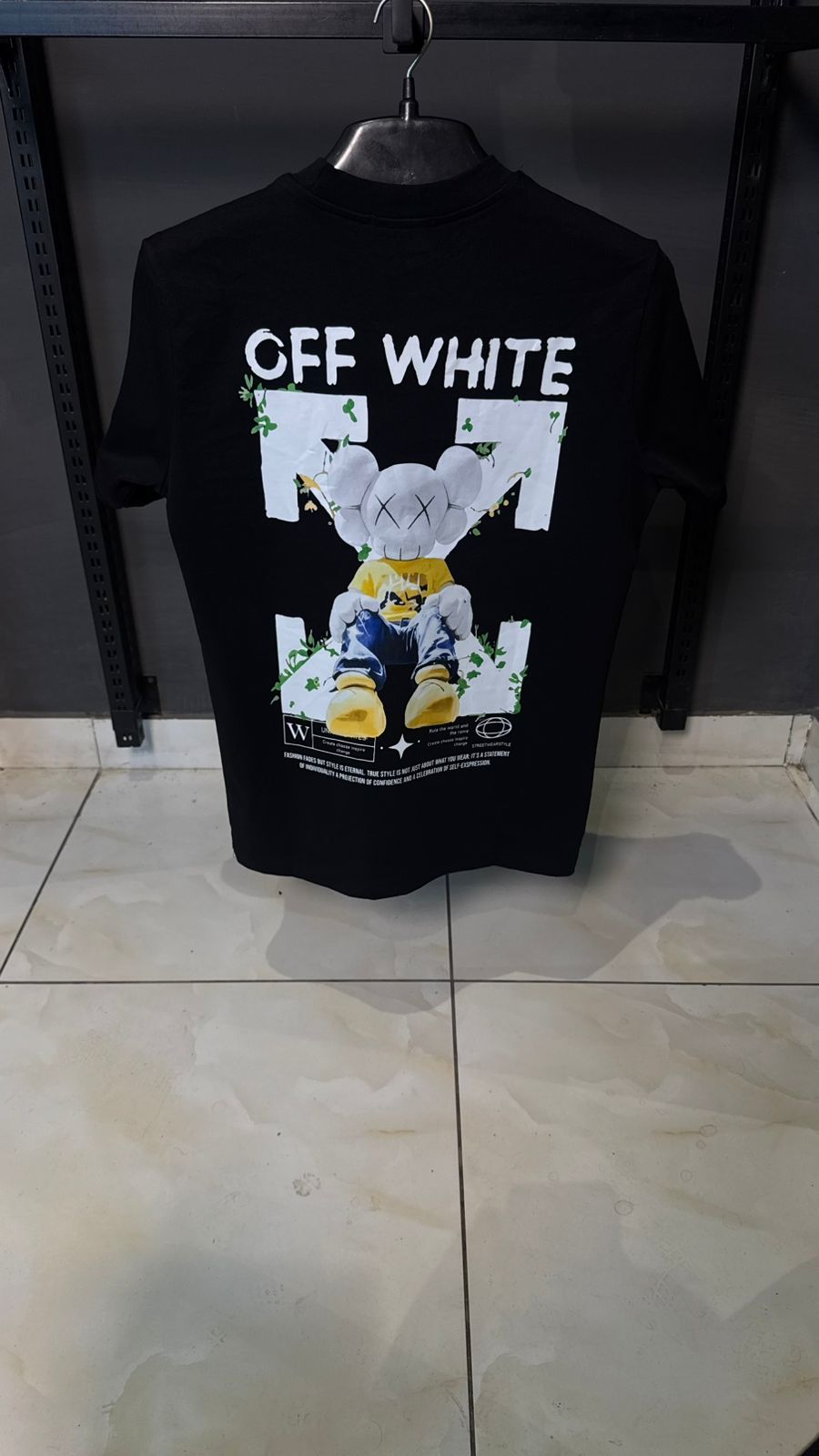 Graphic Branding: Off-White™ logo with “Meteor” circular graphic design on the chest.