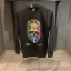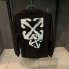 This Off-White sweatshirt features a faded, spray-like “Off-White” logo on the front, giving it a distressed, street-style vibe. The back is detailed with a bold cross graphic, blending edgy design with high-fashion streetwear.