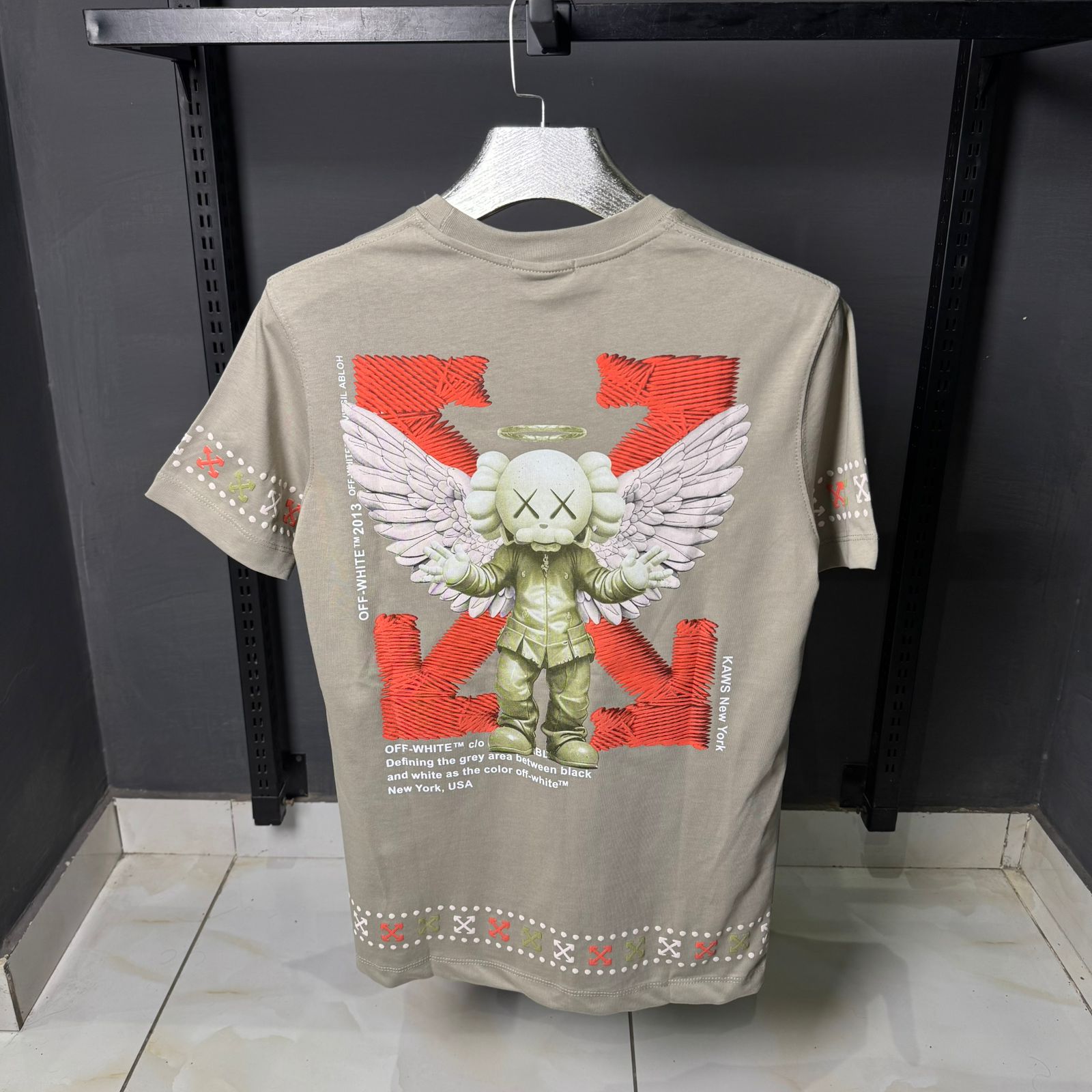Offwhite x kaws tshirt is made up of 100% cotton.featuring Dtg printing & Puff printing.