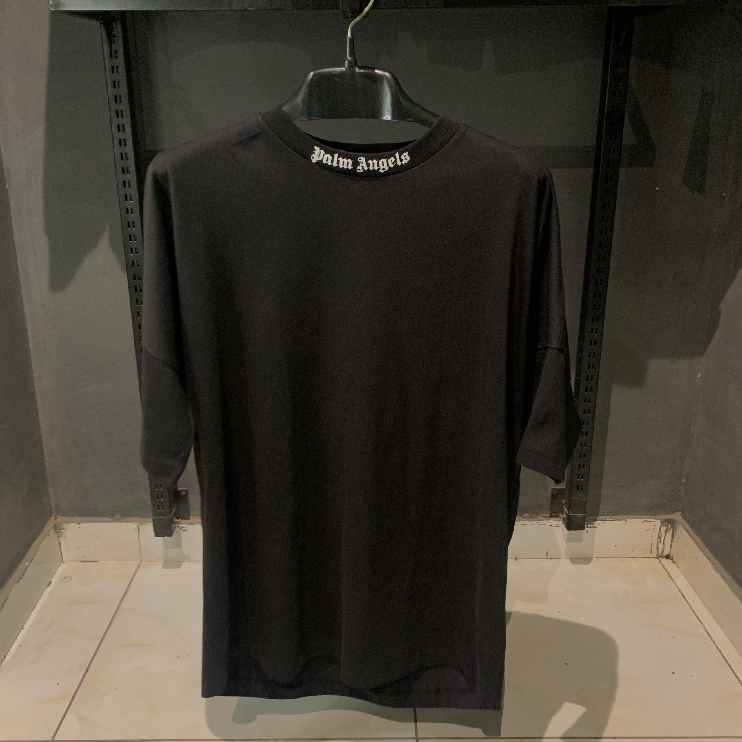 : This oversized Palm Angels T-shirt is defined by its large “PA” logo and sleek black neck detail. Crafted for comfort, its loose silhouette and distinctive design offer a modern, laid-back aesthetic perfect for streetwear lovers.