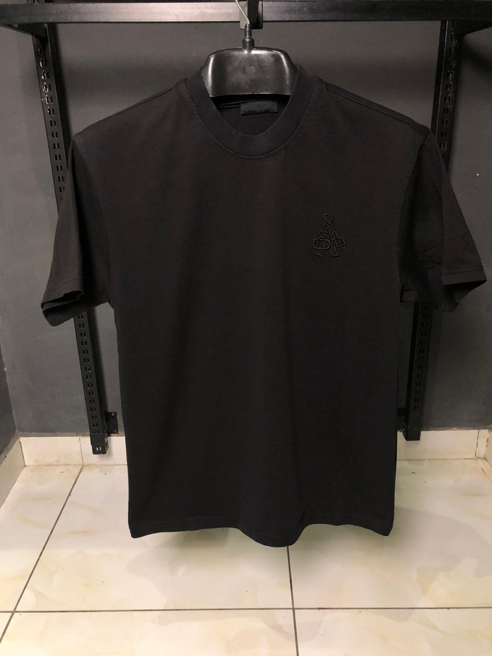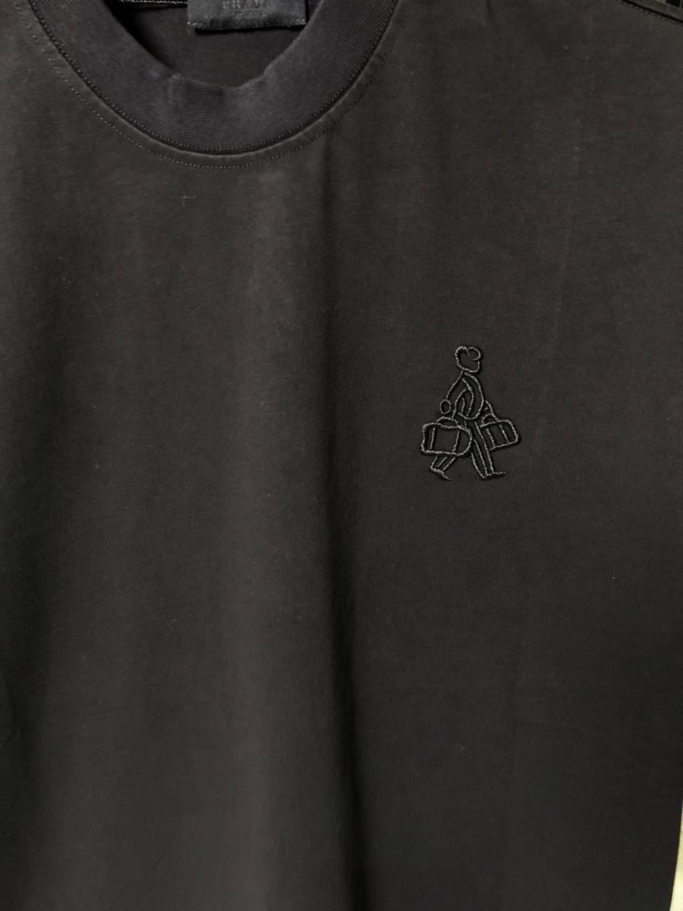 Redefine your luxury staples with this unique Prada Black Graphic T-Shirt. A perfect blend of heritage and contemporary design, this tee features a charming, tonal embroidered porter figure on the chest—a nod to the brand’s long history in luxury travel and luggage.