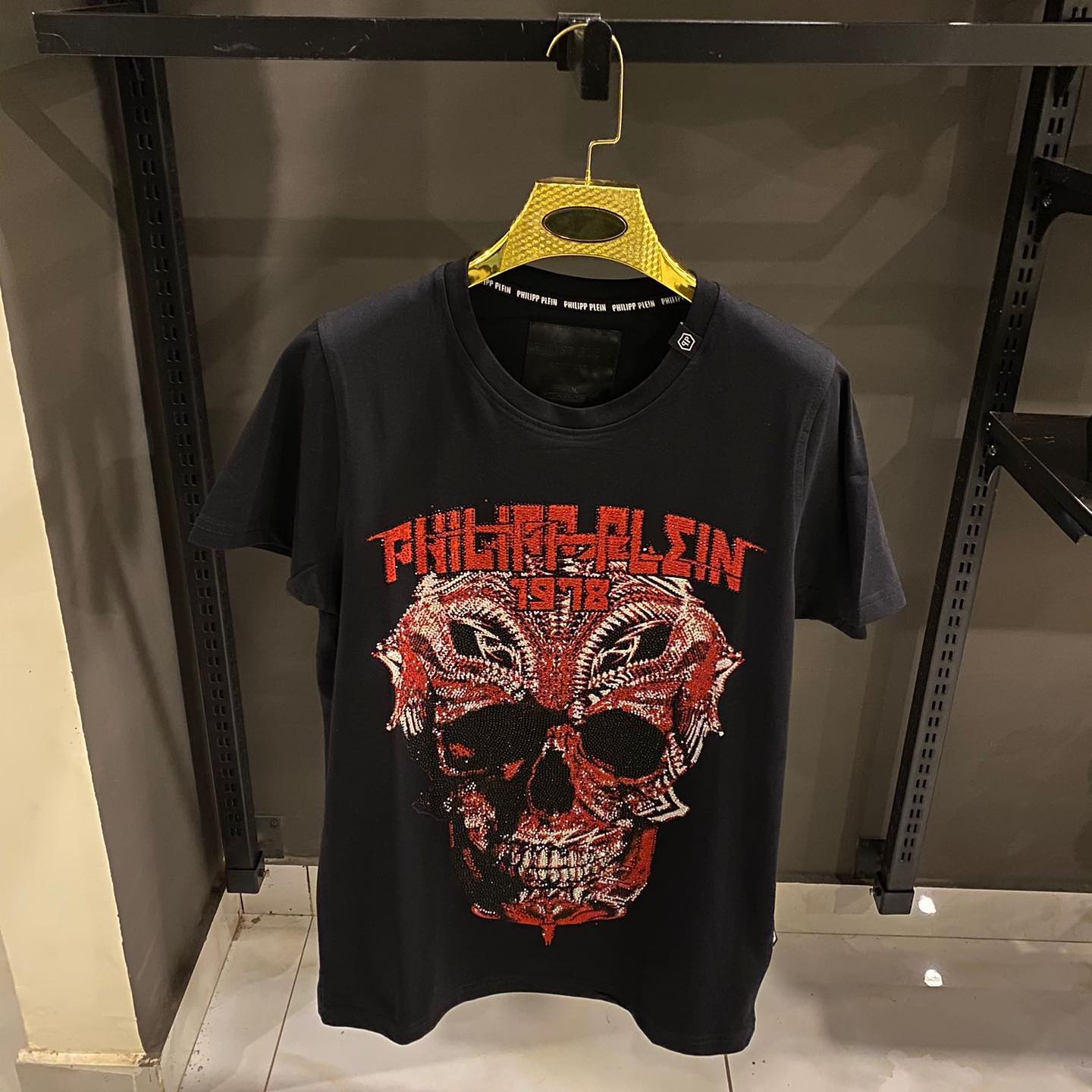 Introducing the PHILPH PLEIN BLACT TSHIRT, where urban fashion meets edgy sophistication. This striking T-shirt boasts a captivating skin print design, adorned with shimmering stones, making it a true fashion statement for the bold and adventurous.