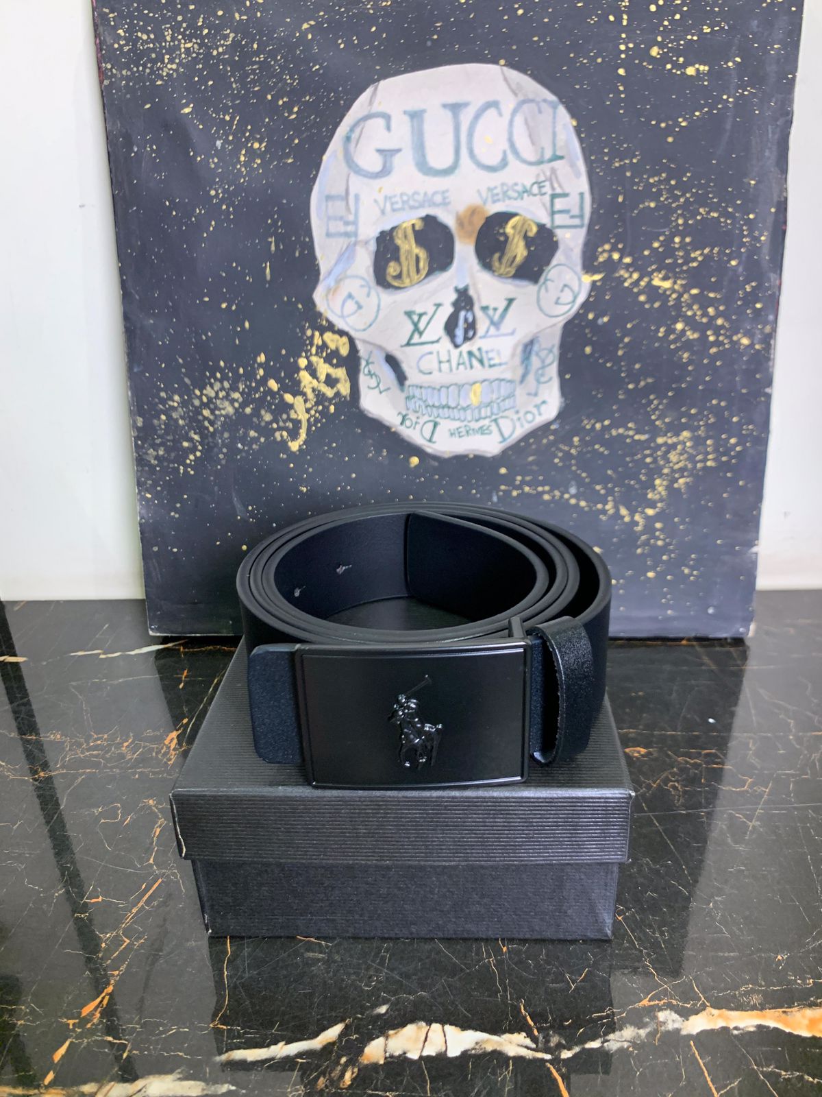 Crafted from genuine leather, this Polo Ralph Lauren belt features a signature Pony logo plaque buckle. A timeless blend of casual elegance and classic American style.