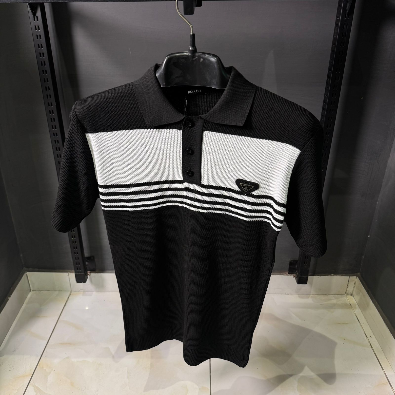 Elevate your wardrobe with this premium PRADA Black & White Polo T-Shirt. Crafted from high-quality fabric, it offers a smooth, breathable feel with a sharp, modern fit. Featuring PRADA’s signature style and minimalist elegance, this shirt blends classic polo design with luxury fashion—perfect for casual sophistication or smart-casual occasions.
