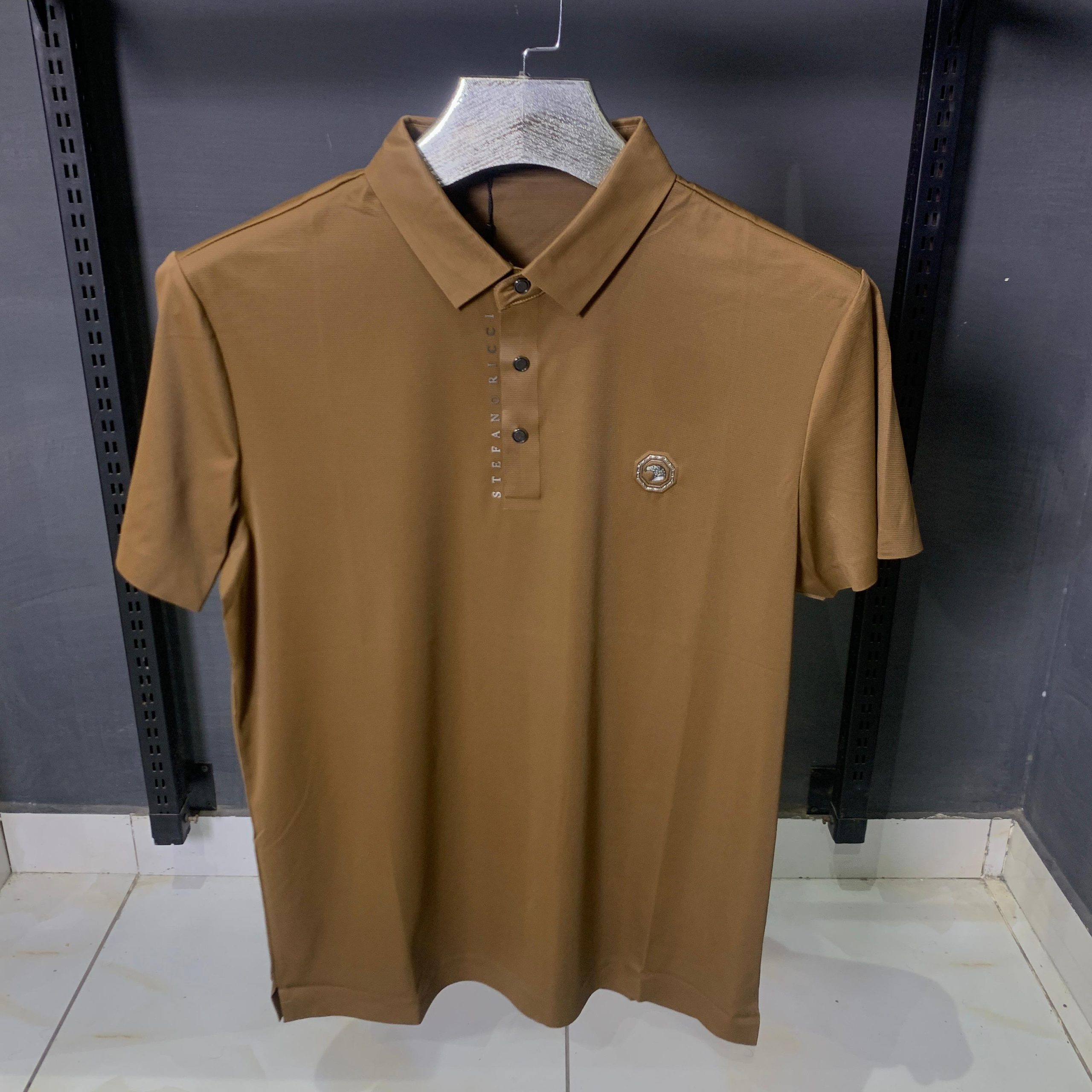 Signature vertical STEFANO RICCI branding on the placket for a sophisticated accent
