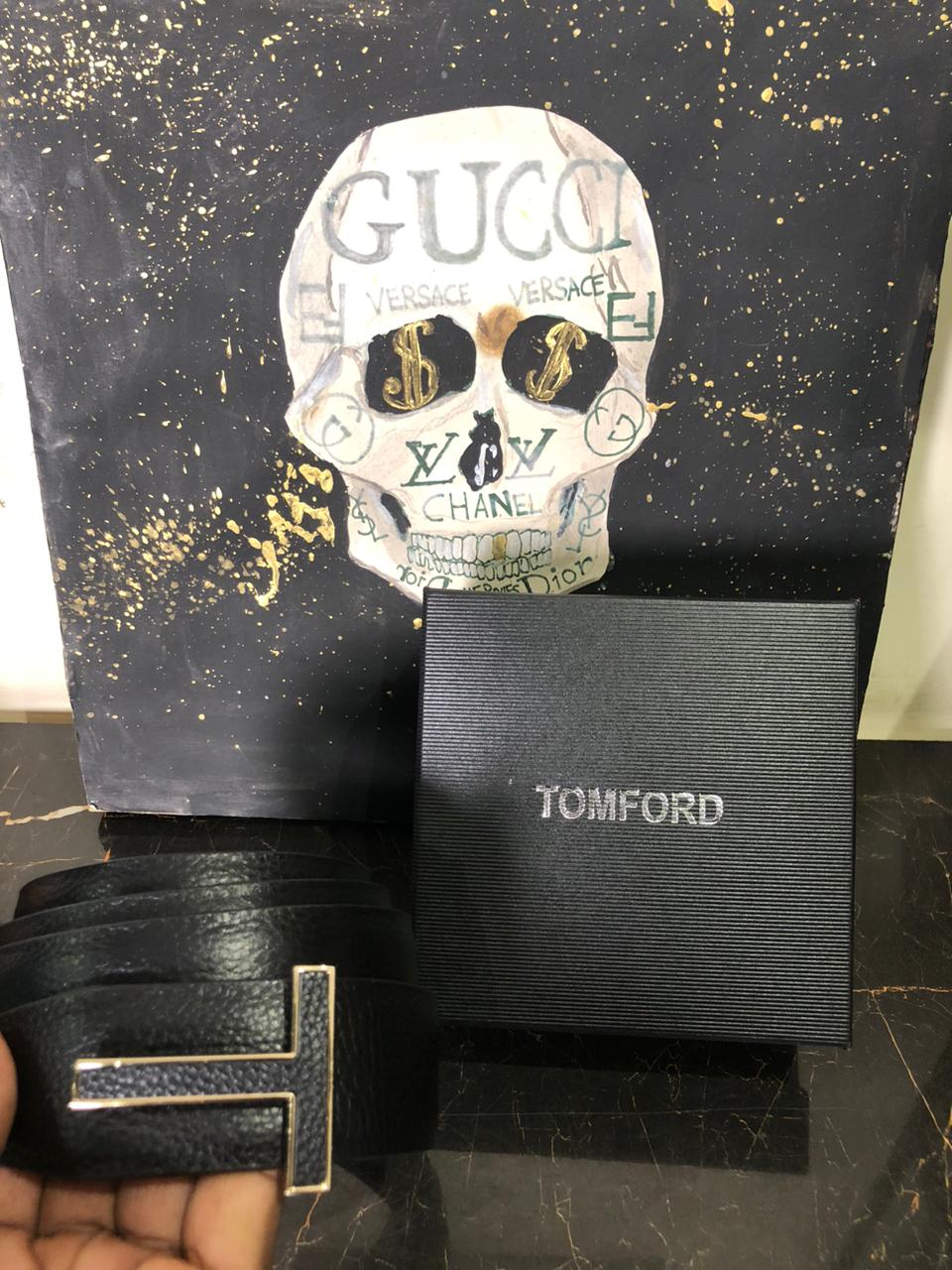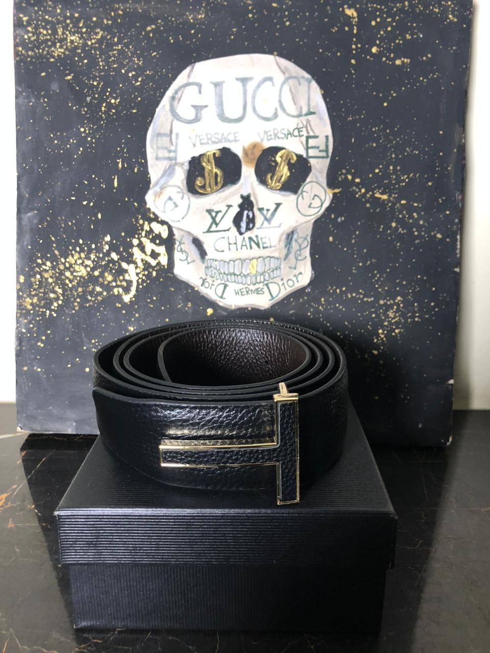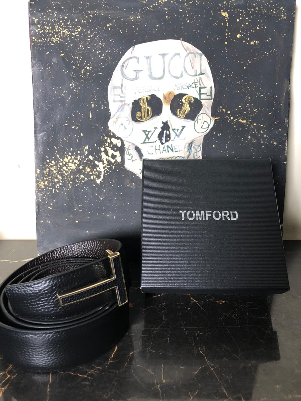 Tags: Italian Leather Belt, Premium Grained Leather, T-Icon Gold Buckle, Tom Ford Gold Belt